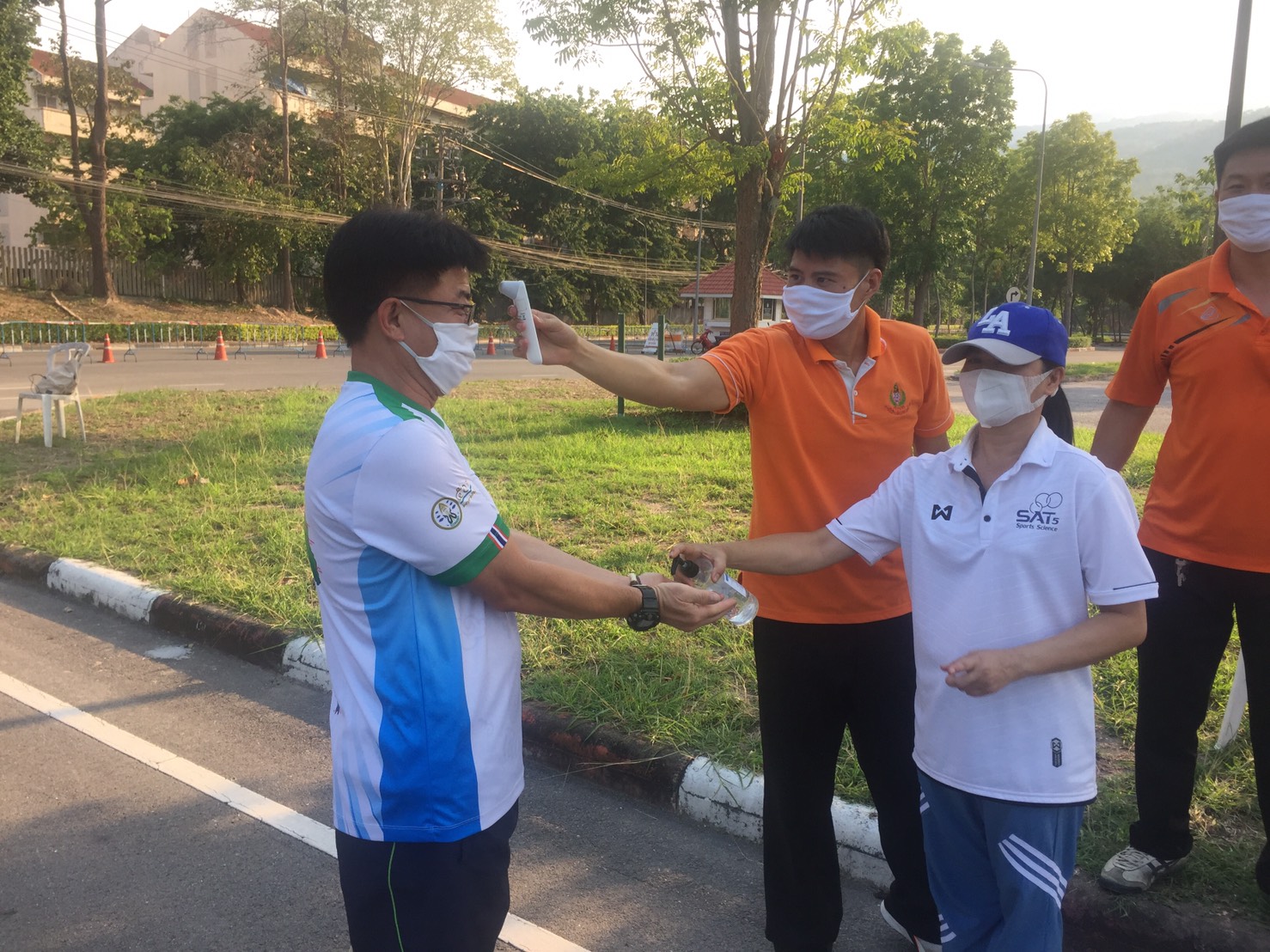 สนาม 700 ปี ใช้มาตรการเข้ม สงค์ศักย์ คำดีรุ่งริรัตน์ ผอ.กกท.จ.เชียงใหม่ เยี่ยมให้กำลังใจเจ้าหน้าที่ พร้อมตรวจวัดอุณหภูมิ เจลล้างมือตามมาตรการจุดคัดกรองผู้ที่มาใช้บริการ ก่อนที่จะออกกำลังกาย ณ บริเวณสนามกีฬาสมโภชเชียงใหม่ 700 ปี ซึ่งเปิดให้ใช้วันแรก หลังจากที่เปิดให้ใช้ สนามยิงปืน และสนามเทนนิส เป็น 2 ชนิดกีฬาไปแล้ว