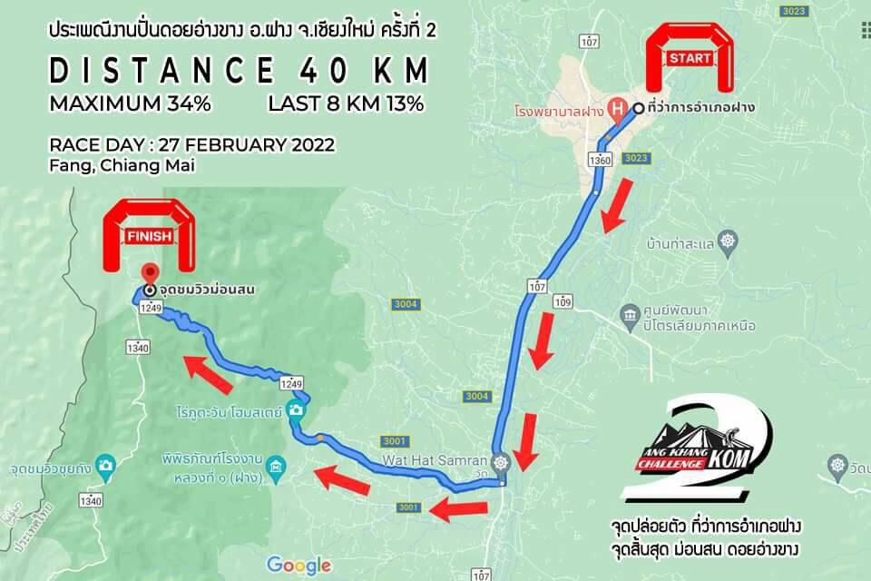 วันเสาร์ที่ 26 กุมภาพันธ์ 2565 เวลา 11.00 – 18.00 – ลงทะเบียนรับชุด Race Pack ที่ว่าการอำเภอฝาง ผู้เข้าร่วมการแข่งขันจะต้องแสดงหลักฐานการฉีดวัคซีน และจะต้องแสดงผลการตรวจหาเชื้อไวรัสโควิด-19 ด้วยวิธีการ PCR Testหรือ Antigen test kit และมีผลเป็น “ลบ”