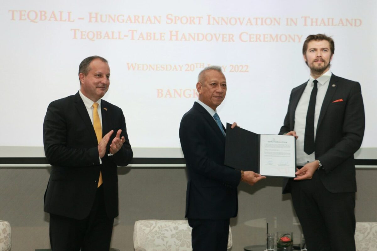นายพิพัฒน์ รัชกิจประการ รัฐมนตรีว่าการกระทรวงการท่องเที่ยวและกีฬา เป็นประธานในพิธีรับมอบโต๊ะเทคบอล (Teqball-Table Handover Ceremony) จากสหพันธ์กีฬาเทคบอลนานาชาติ โดยมี H.E Dr. Sandor Sipos เอกอัครราชทูตวิสามัญผู้มีอำนาจเต็มแห่งฮังการี, Mr. Gergely Murányi หัวหน้าฝ่ายความสัมพันธ์ทางการทูตและcsr สหพันธ์กีฬาเทคบอลนานาชาติ และผู้บริหาร กกท. ร่วมงาน ณ The Glass House ปาร์คนายเลิศ