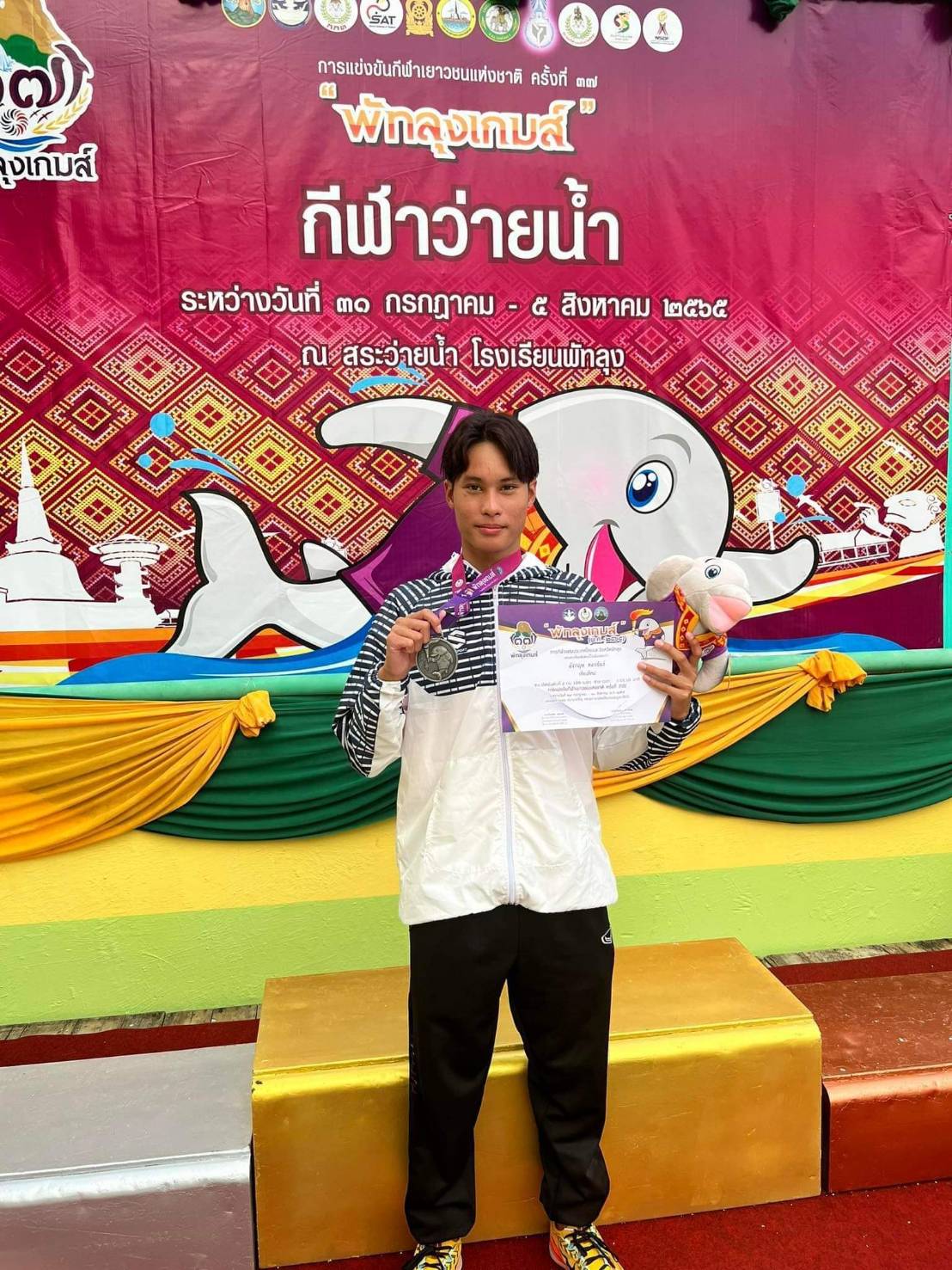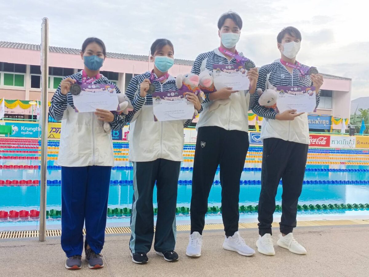วันที่ 3 สิงหาคม 2565 เวลา 16:30 น. สนามสระว่ายน้ำ โรงเรียนพัทลุง อ.เมือง จ.พัทลุง เหรียญทอง ทีม กรุงเทพมหานคร ศราวิน อภินทนาพงศ์ ชิติพันธ์ สะเดา ภัณฑิรา ศุภอมร ศุภกร สุขเกษม กรุงเทพมหานคร สถิติ 00:03:49.89