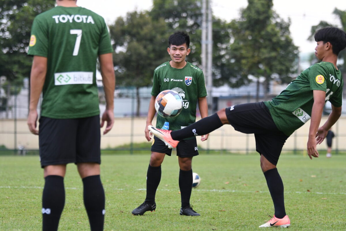 วันที่ 4 สิงหาคม 2565 เวลา 16.30 น. ณ สนาม … ในนครโฮจิมินห์ ประเทศเวียดนาม ฟุตบอลชายทีมชาติไทย รุ่นอายุไม่เกิน 19 ปี ลงสนามฝึกซ้อม เพือเตรียมพร้อมก่อนการแข่งขันฟุตบอลทันเนียน คัพ U19 2022 นัดแรกที่จะพบกับ มาเลเซีย