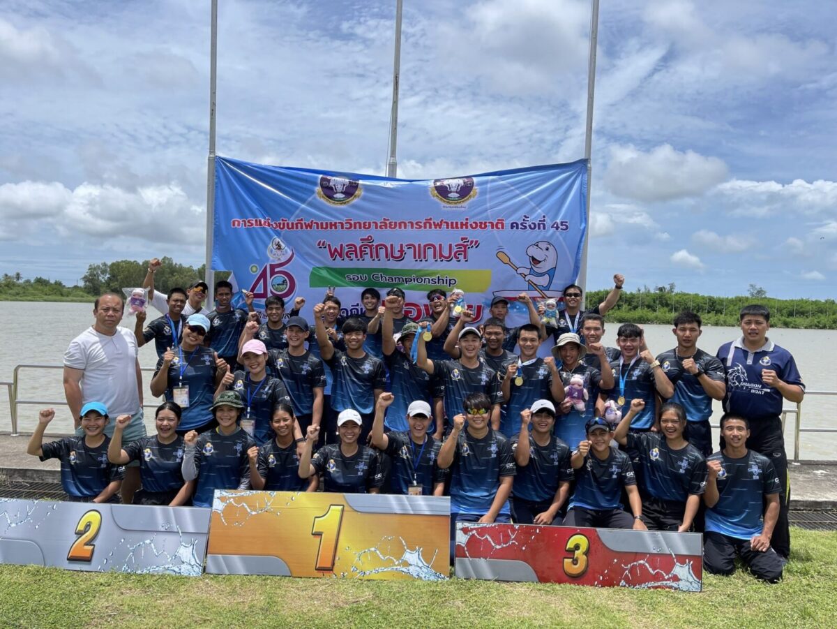 สรุปผลการแข่งขันเรือพายกีฬามหาวิทยาลัยแห่งชาติ “พลศึกษาเกมส์” ครั้งที่ 45 ระหว่างวันที่ 9-11 สิงหาคม 2565 ณ ศูนย์ฝึกกีฬาเรือพายราชนาวี อ่างเก็บน้ำคลองบางไผ่ จัดการแข่งขันโดย มกช.เชียงใหม่ โดยการนำของ ดร.จารุวัฒน์ สัตยานุรักษ์ รองอธิการบดีฯ ผู้จัดการทีม นายศุภกร ลาภกองศิลป์ หัวหน้าผู้ฝึกสอน นายณัฐกุล แบ่งทิศ และน.ส.เมธินี ระรื่น ผู้ฝึกสอน ได้จัดส่งนักกีฬาเข้าร่วมการแข่งขันจำนวน 42 คน มีรายการแข่งขันทั้งหมด 28 รายการ
