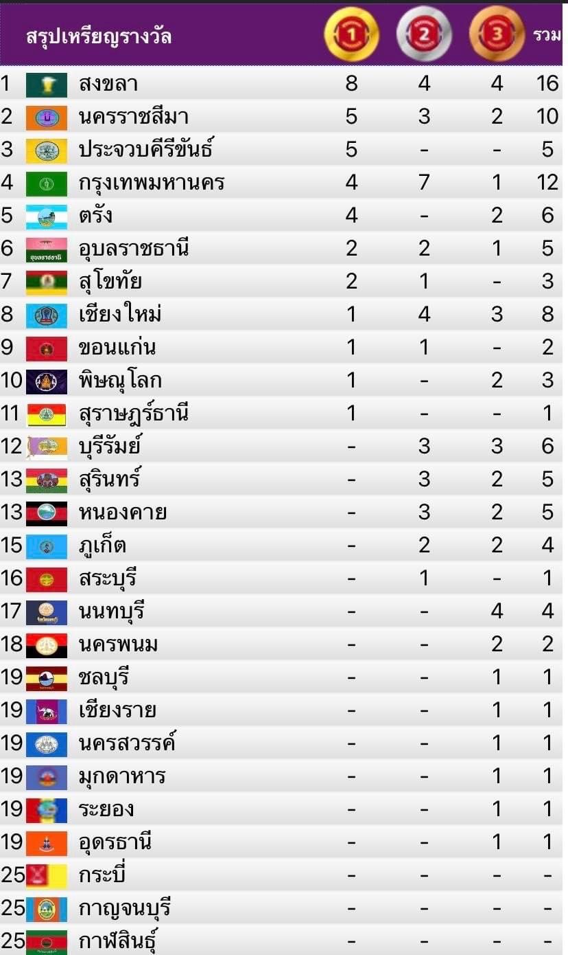 3 เหรียญทองแดง จาก*กีฬาลีลาศ Latin American Master II Class E (45-54) ,Standard Master I Class D (35-44) , Standard Master I Class E (35-44) รวมเป็น 8 เหรียญ อยู่ในอันดับที่ 8 ของตราง มี สงขลา นำเจ้าทอง