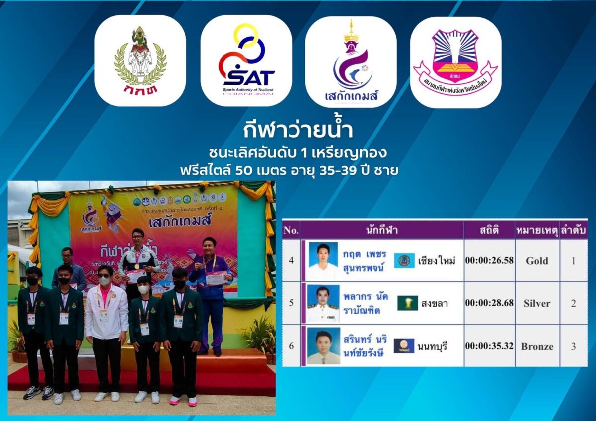 สำรวย สุนทรวิภาต*กีฬาว่ายนำ้ ฟรีสไตล์ 50 เมตร อายุ 35 – 39 ปี ชาย…..