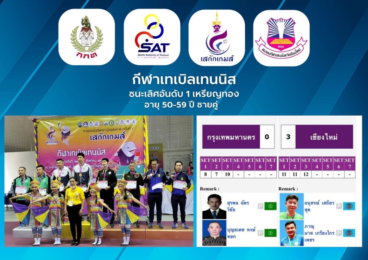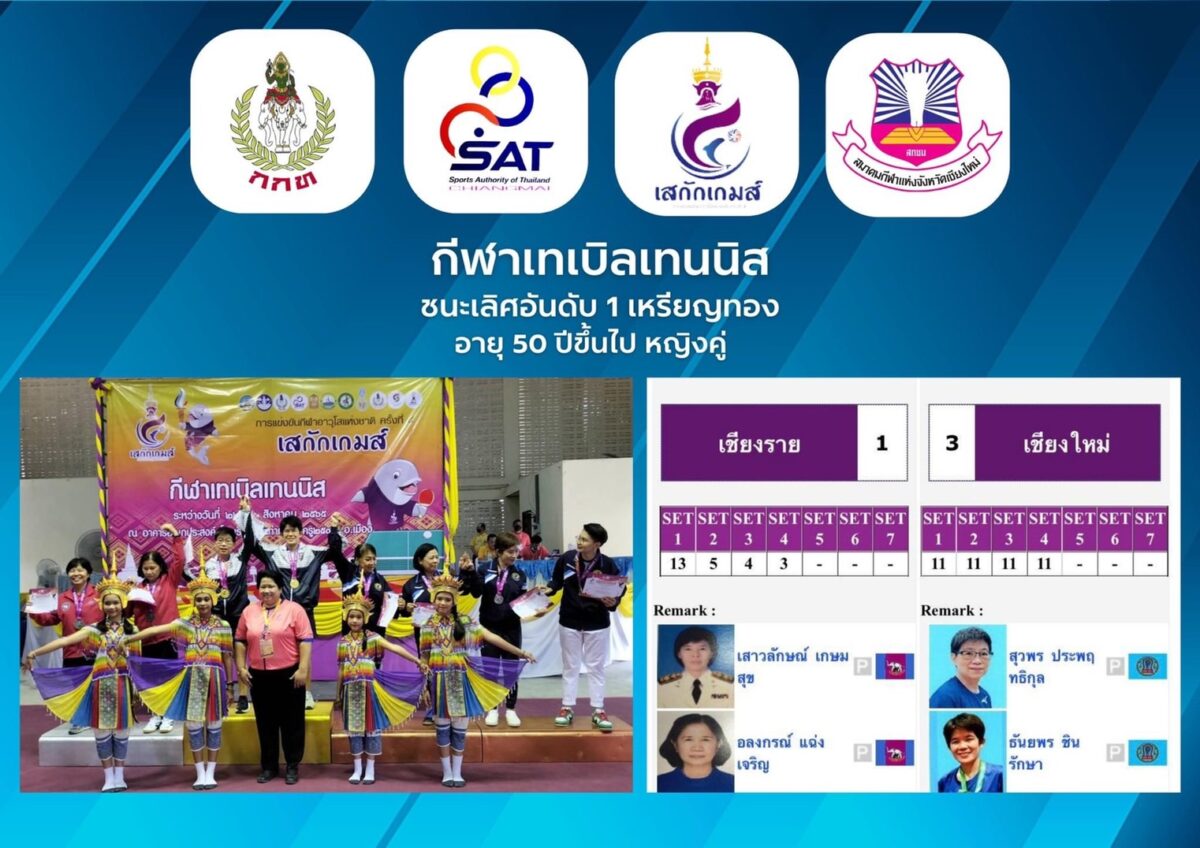 นายก่อพงศ์ นำบุญจิตต์ ผอ. กกท. เชียงใหม่ หัวหน้านักกีฬาอาวุโส สรุปเหรียญรางวัลกีฬาอาวุโสแห่งชาติ ครั้งที่ 4 “เสกักเกมส์” ประจำวันที่ 26 สิงหาคม 2565 จังหวัดเชียงใหม่ อยู่ในลำดับที่ 3 ได้เพิ่มมา 7 เหรียญ ดังนี้ 3 เหรียญทอง กีฬาเทเบิลเทนนิส อายุ 50-59 ปี ชายคู่ , หญิงคู่ เทเบิลเทนนิส อายุ 50 ปีขึ้นไป สุวพร ประพฤทธิกุล ธันยพร ชินรักษา ,เทเบิลเทนนิส อายุ 50-59 ปี ชายคู่ อนุสรณ์ เสถียรสุด ,กีฬาเพาะกาย สปอร์ตฟิสิคอาวุโสชาย อายุ 50 ปี ,เพาะกายสปอร์ตฟิสิคอาวุโสชาย อายุ 50 ปีขึ้นไป มนัส ปานเนตร