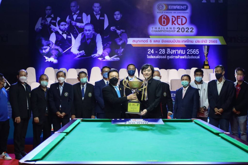 การแข่งขันสนุกเกอร์ 6 แดง ชิงแชมป์ประเทศไทย ประจำปี 2565 ณ ศูนย์การค้าแฟชั่น ไอซ์แลนด์ เมื่อวันที่ 28 สิงหาคม ที่ผ่านมา เป็นการแข่งขันในวันสุดท้าย โดยมี คุณหญิงสุดารัตน์ เกยุราพันธุ์ ประธานพรรคไทยสร้างไทย มาเป็นประธานมอบรางวัลพร้อมด้วย นายสุนทร จารุมนต์ นายกสมาคมกีฬาบิลเลียดแห่งประเทศไทย นายกสมาคมกีฬาบิลเลียดแห่งประเทศไทยมาร่วมในพิธีมอบรางวัล โดยก่อนยคู่ชิงจะเริ่มขึ้น มีการแข่งขันสนุกเกอร์ชิงดำคู่พิเศษ ระหว่าง “หม่ำ จ๊กมก”เพ็ชรทาย วงษ์คำเหลา ดาราตลกชื่อดัง ดวลกับ “โก๊ะ ท่าทราย”อำนาจ เรืองสำราญ นายกสมาคมกู้ชีพบัวเพชร จ.ปทุมธานี ซึ่งผลการดวลคิวชิงดำปรากฏว่า โก๊ะ ท่าทราย เอาชนะไป 2-0 เกม