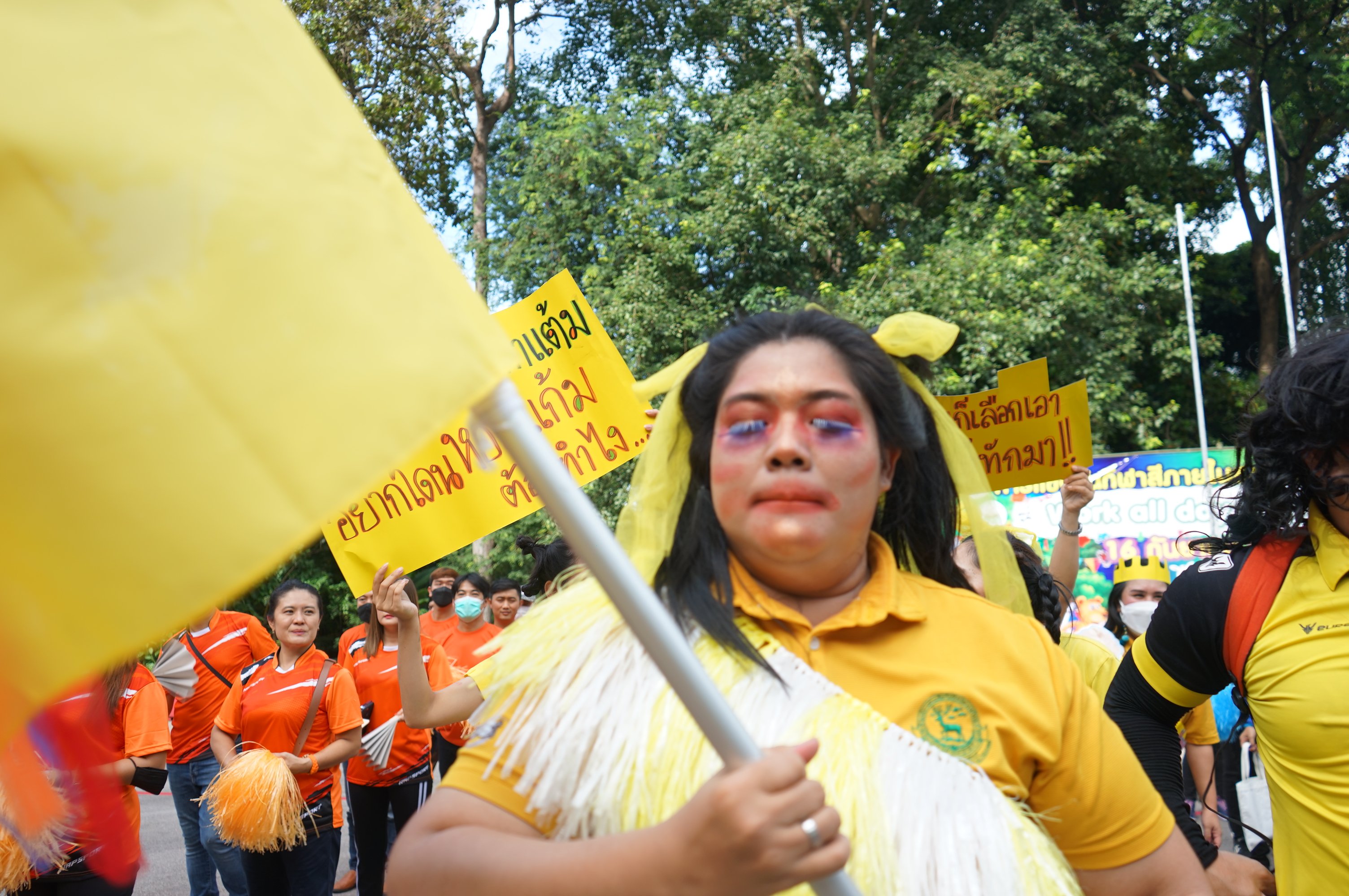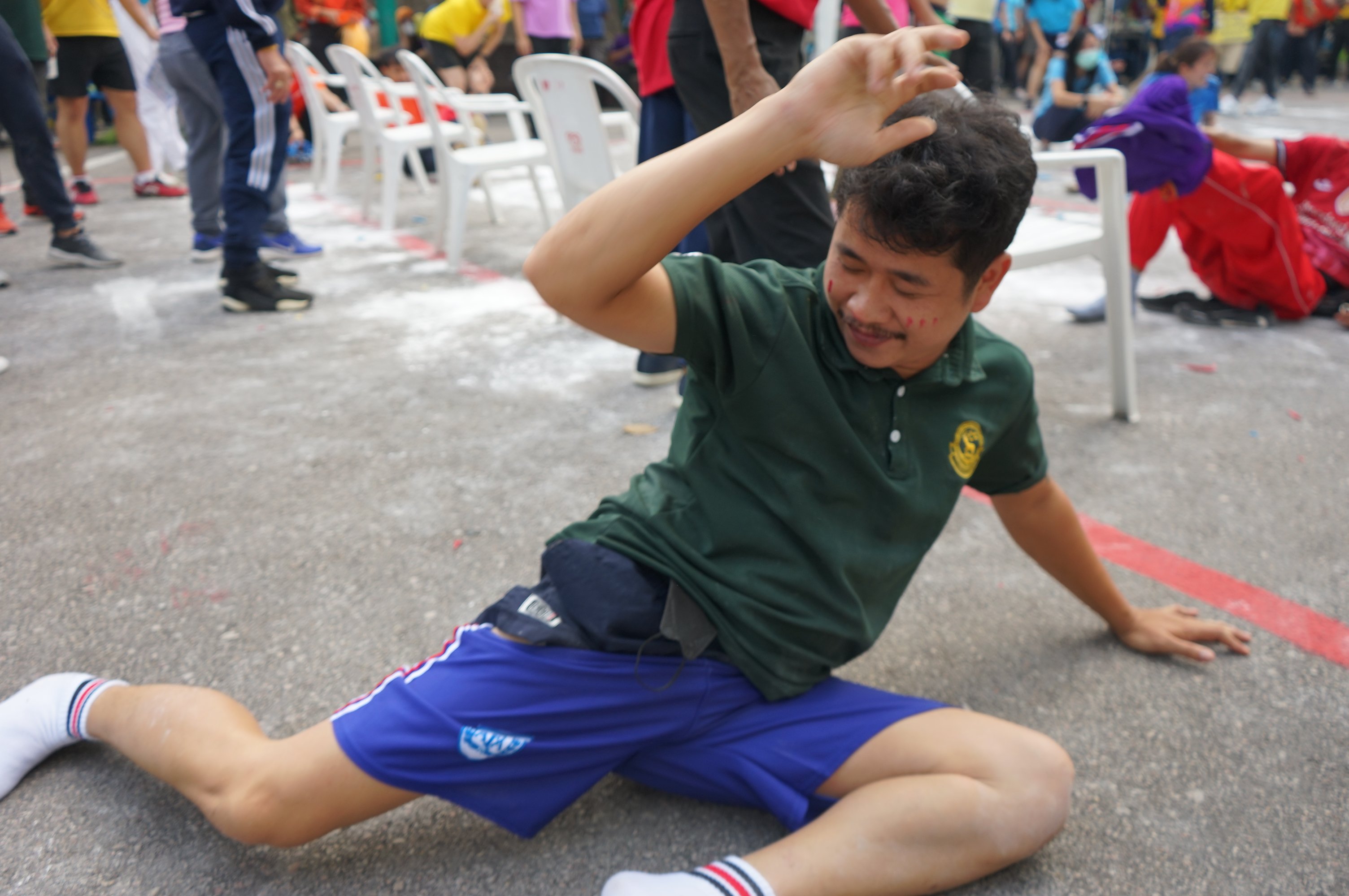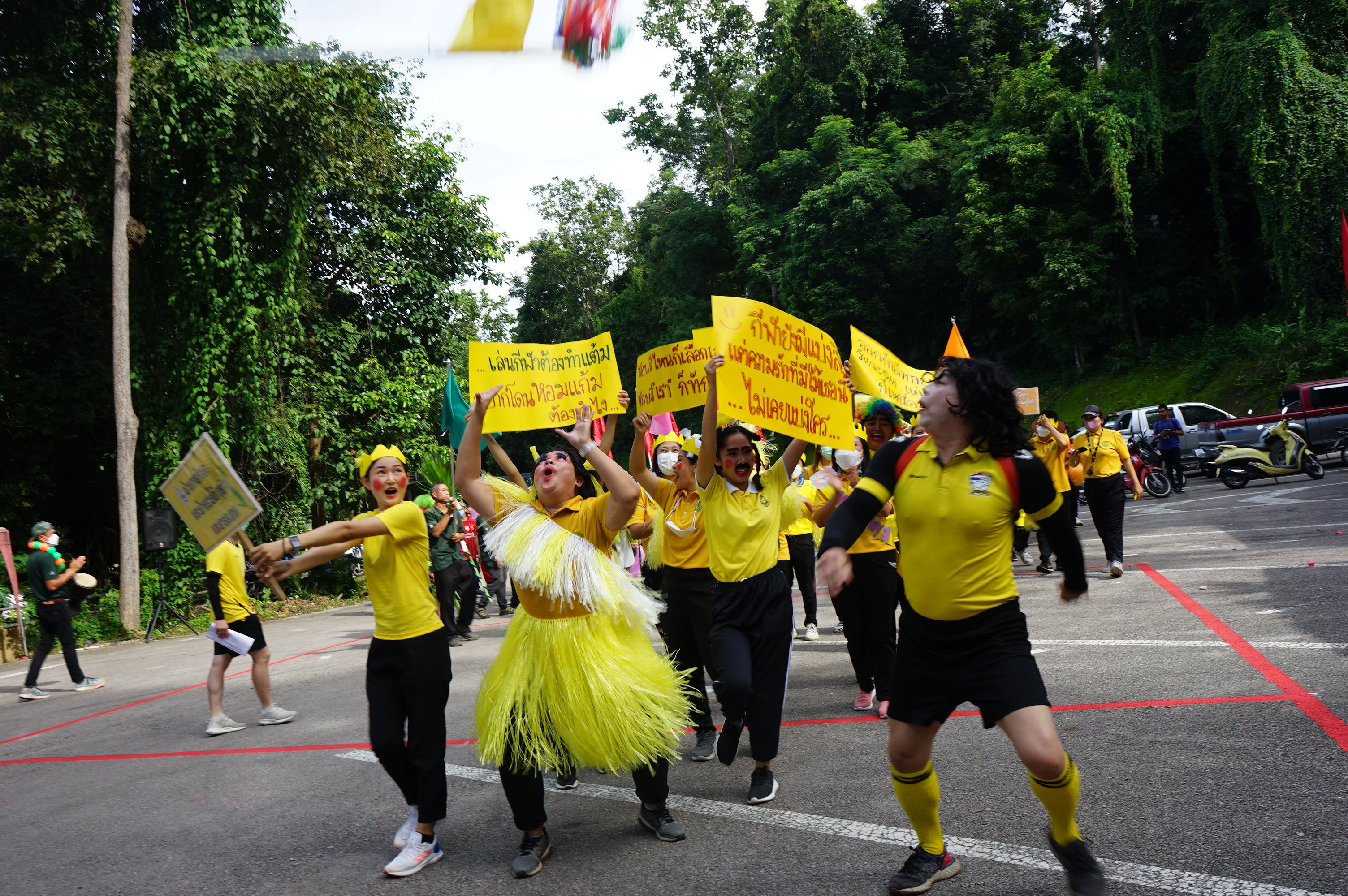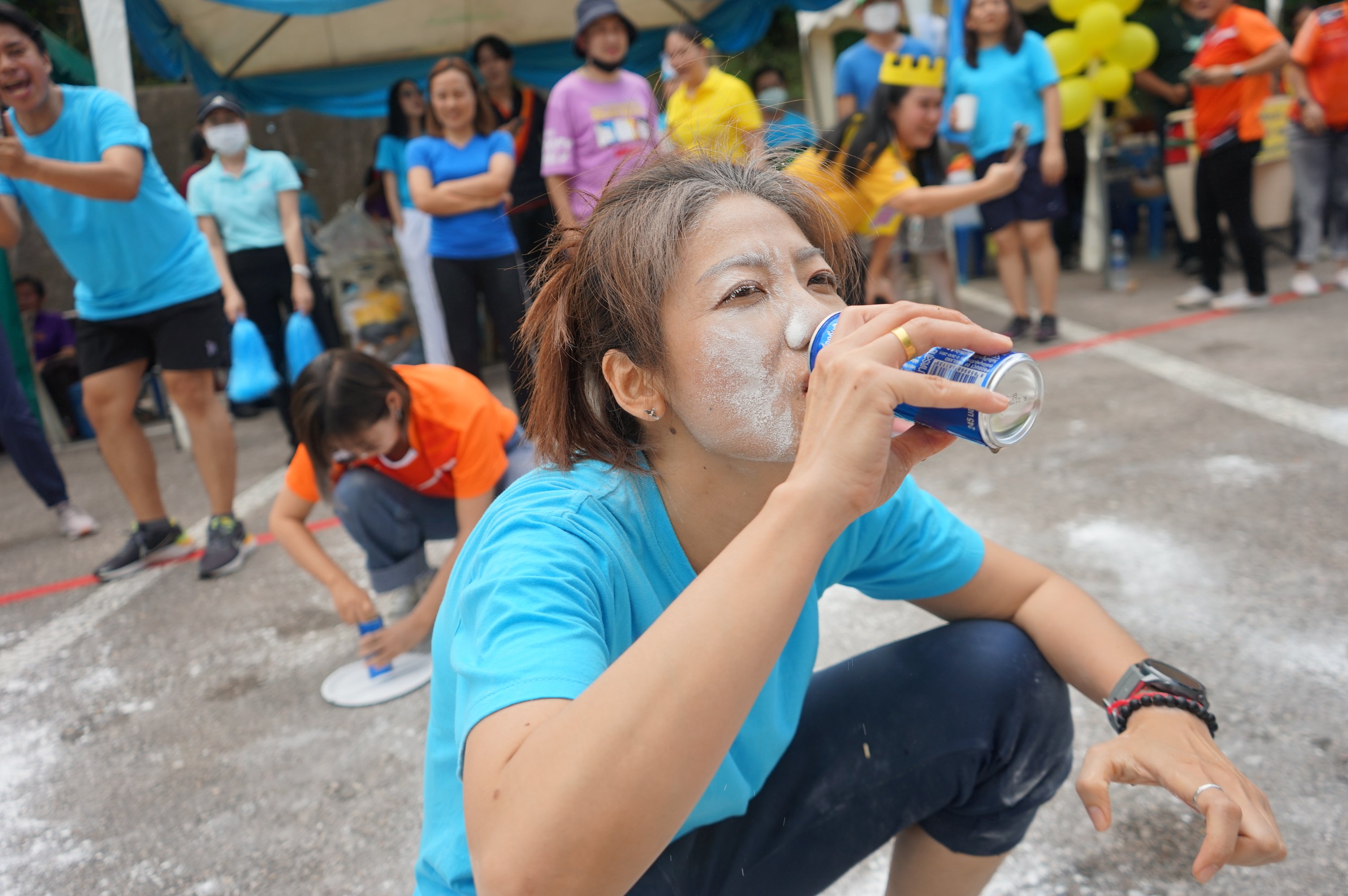 - แข่งขันกันระหว่าง ทีมสีฟ้า/ สีเหลือ /สีส้ม พบกับ ทีมสีเขียว/สีชมพู/สีแดง)