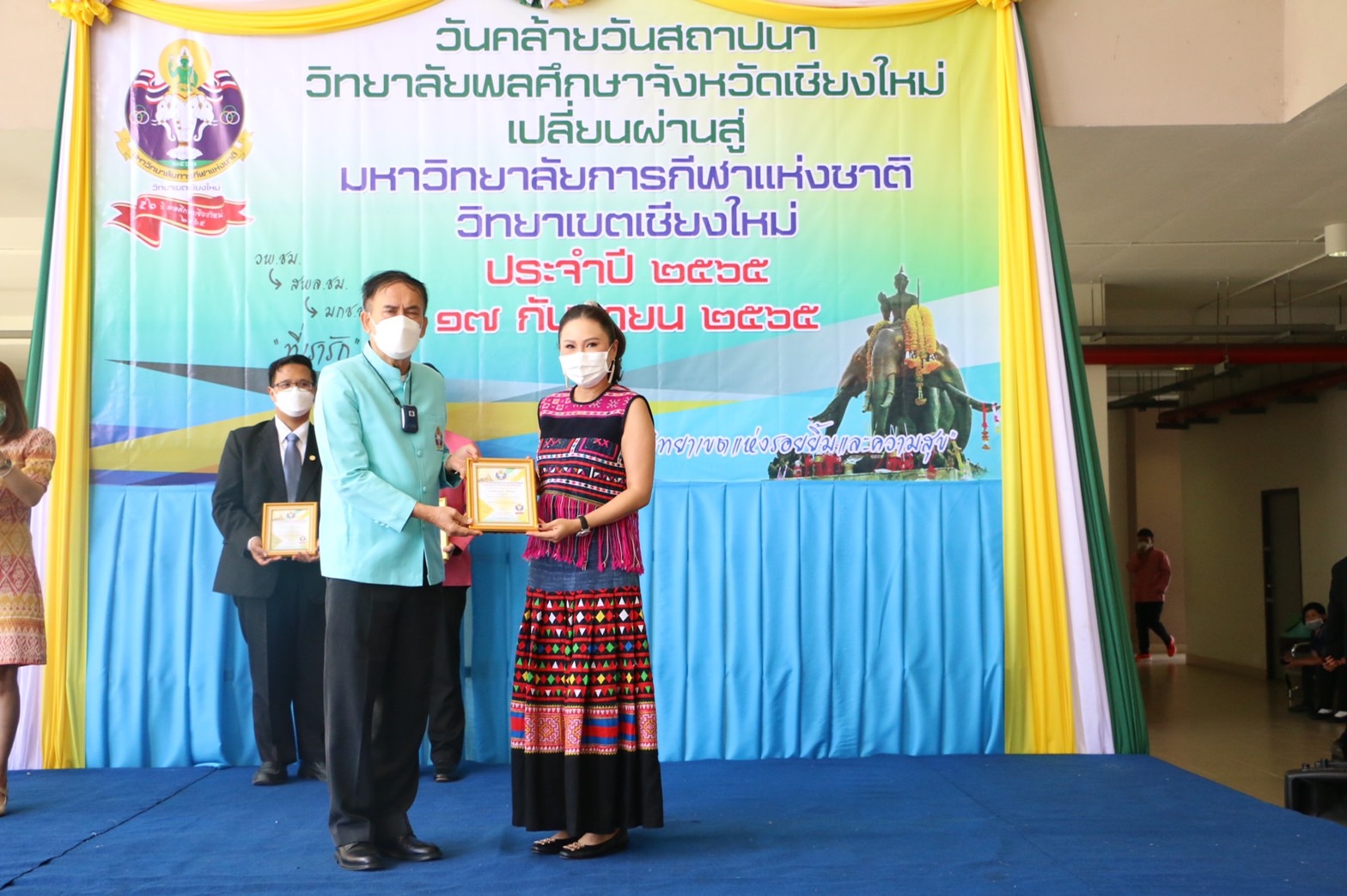 มอบโล่ …ดร.จารุวัฒน์ สัตยานุรักษ์ มอบรางวัล “ คนดีศรีพลศึกษาเชียงใหม่” เพื่อเป็นการยกย่องเชิดชูบุคคลที่ทำคุณประโยชน์แก่ มกช.เชียงใหม่ ให้กับ. มาดามปุ๊ก รัตนประภา ดิศวัฒน์ บอสใหญ่สิบแสน ในงาน วันสถาปนา มกช. เชียงใหม่ ครบ 52 ปี