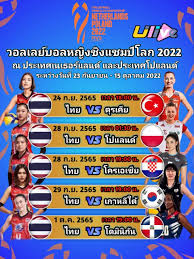 นักตบลูกยางสาวทีมชาติไทย อันดับ 14 ของโลก ประเดิมสนามพบคู่ปรับเก่า ทีมชาติตุรกี อันดับ 5 ของโลก ในการแข่งขันวอลเลย์บอลหญิงชิงแชมป์โลก รายการ “เอฟไอวีบี วอลเลย์บอล วีเมนส์ เวิลด์ แชมเปี้ยนชิพ 2022” กลุ่มบี นัดแรก ที่เมืองอาร์เนม ประเทศเนเธอร์แลนด์ เมื่อวันที่ 24 กันยายน