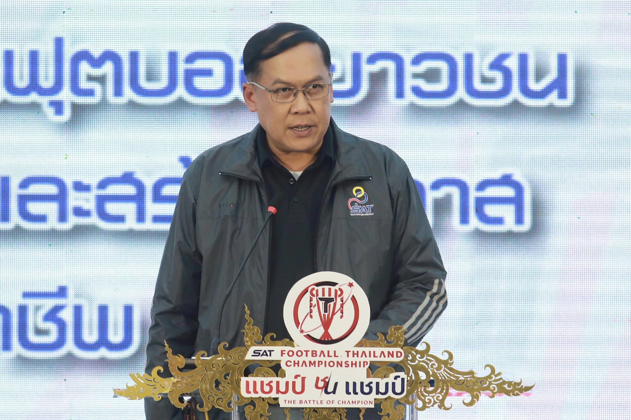 “การแข่งขันฟุตบอล โครงการเพื่อสร้างแรงบันดาลใจ และสร้างโอกาสให้กับเยาวชนต่อยอดสู่ระดับอาชีพ SAT Football Thailand Championship “แชมป์ชนแชมป์” ประจำปี 2565 จะจัดขี้นระหว่างวันที่ 22-23 ตุลาคม 2565 ณ สนามหญ้าเทียม สนามกีฬากลางจังหวัดเชียงราย โดยจะเป็นส่วนสำคัญในการทำให้เป้าหมายของแผนยุทธศาสตร์ 20 ปี ประสบความสำเร็จได้เร็วขึ้น เราจะมีทั้งนักฟุตบอลที่มีคุณภาพ ในระดับอาชีพ รวมถึงผลักดันให้เกิดการท่องเที่ยวภายในประเทศ ที่จะช่วยกระตุ้น และฟื้นฟูเศรษฐกิจของเรา ให้รอดพ้นจากวิกฤตของการระบาดจากไวรัสโควิด-19 ได้อีกด้วย”