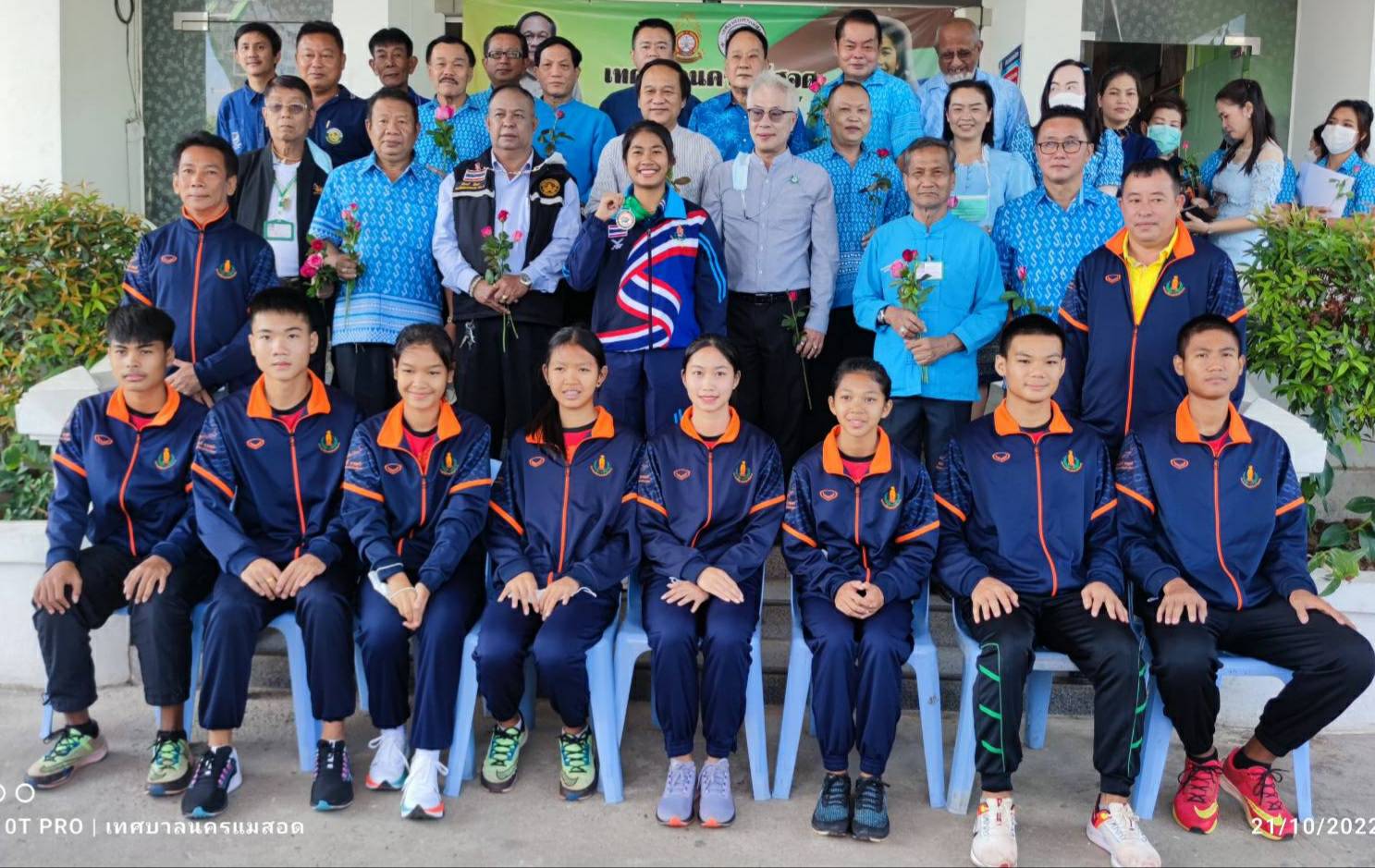 ว่าที่ ร.ต.ประเสริฐ ปวงละคร นายกเทศมนตรีนครแม่สอด จ.ตาก นำคณะผู้บริหาร เลขาฯ ที่ปรึกษา สมาชิกสภาฯ ปลัด รองปลัด ผอ.กอง/ฝ่าย และพนักงานเทศบาล ร่วมแสดงความยินดีกับ น.ส.สุชญา คำแดงดี (น้องนุ่น) นักเรียนชั้น ม.5 โรงเรียนกีฬาเทศบาลนครแม่สอด ที่ไปคว้าเหรียญเงินในการแข่งขัน Asian U 18 Athetics Championships 2022 ที่ประเทศคูเวต เมื่อคืนวันที่ 16 ต.ค. 65 ที่ผ่านมา