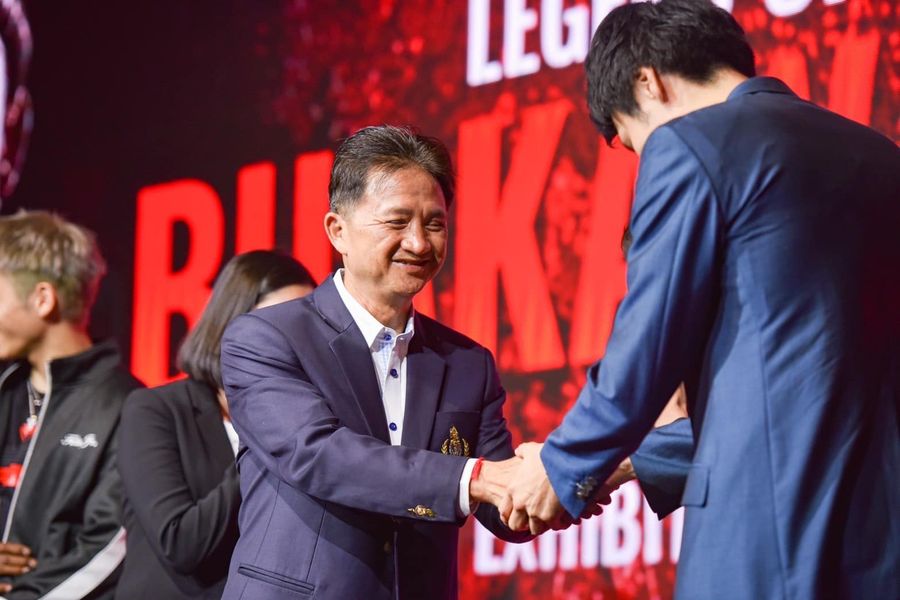 นายทนุเกียรติ จันทร์ชุม รองผู้ว่าการ กกท. ฝ่ายกีฬาอาชีพและกีฬามวย เข้าร่วมงานแถลงข่าวการสนับสนุนการจัดงานจากภาครัฐ สมาคมและพันธมิตร รายการ KAT PRESENTS LEGEND OF RAJADAMNERN ณ เวทีมวยราชดำเนิน ที่ผ่านมา