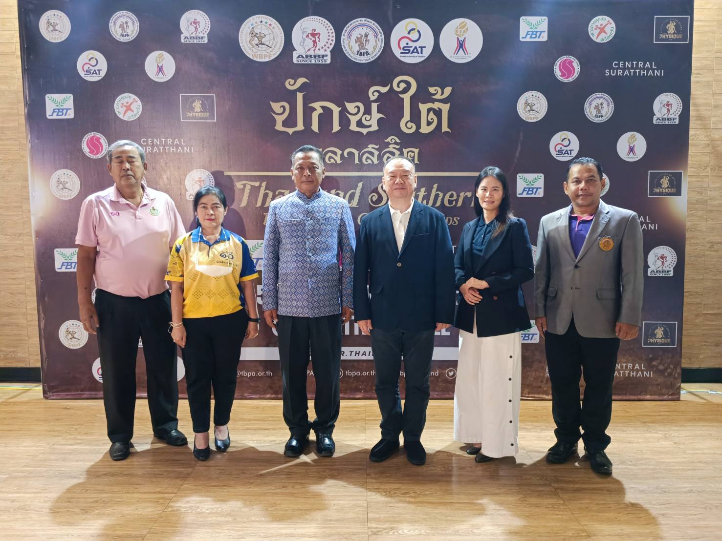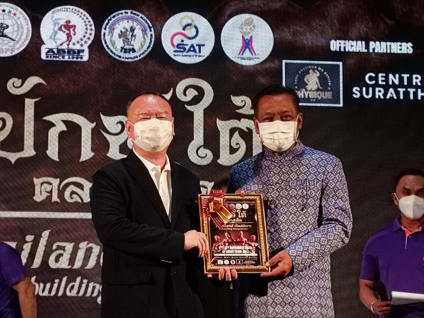นายศุกรีย์ สุภาวรีกุล นายกสมาคมกีฬาเพาะกายและฟิตเนสแห่งประเทศไทย, ผศ.เผด็จ นวนหนู นายกสมาคมกีฬาแห่งจ.สุราษฎร์ธานี, นางรุ้งเพชร รอดแก้ว ผู้อำนวยการ สำนักงานการกีฬาแห่งประเทศไทย จ.สุราษฎร์ธานี, กรรณิการ์ รสทิพย์ ผู้จัดการแผนกร้านค้าสัมพันธ์ ศูนย์การค้าเซ็นทรัลสุราษฎร์ธานี และมี นายบุญชัย แซ่แต้ กรรมการบริหารและผู้ช่วยเลขาธิการ สมาคมกีฬาเพาะกายและฟิตเนสแห่งประเทศไทย กล่าวรายงาน