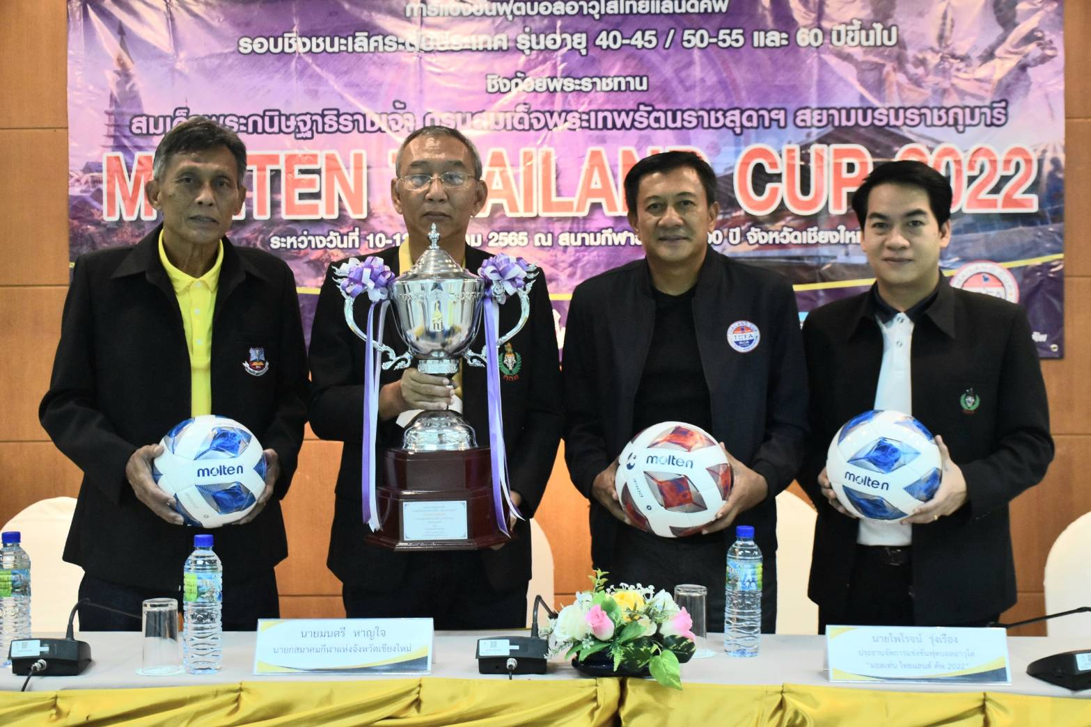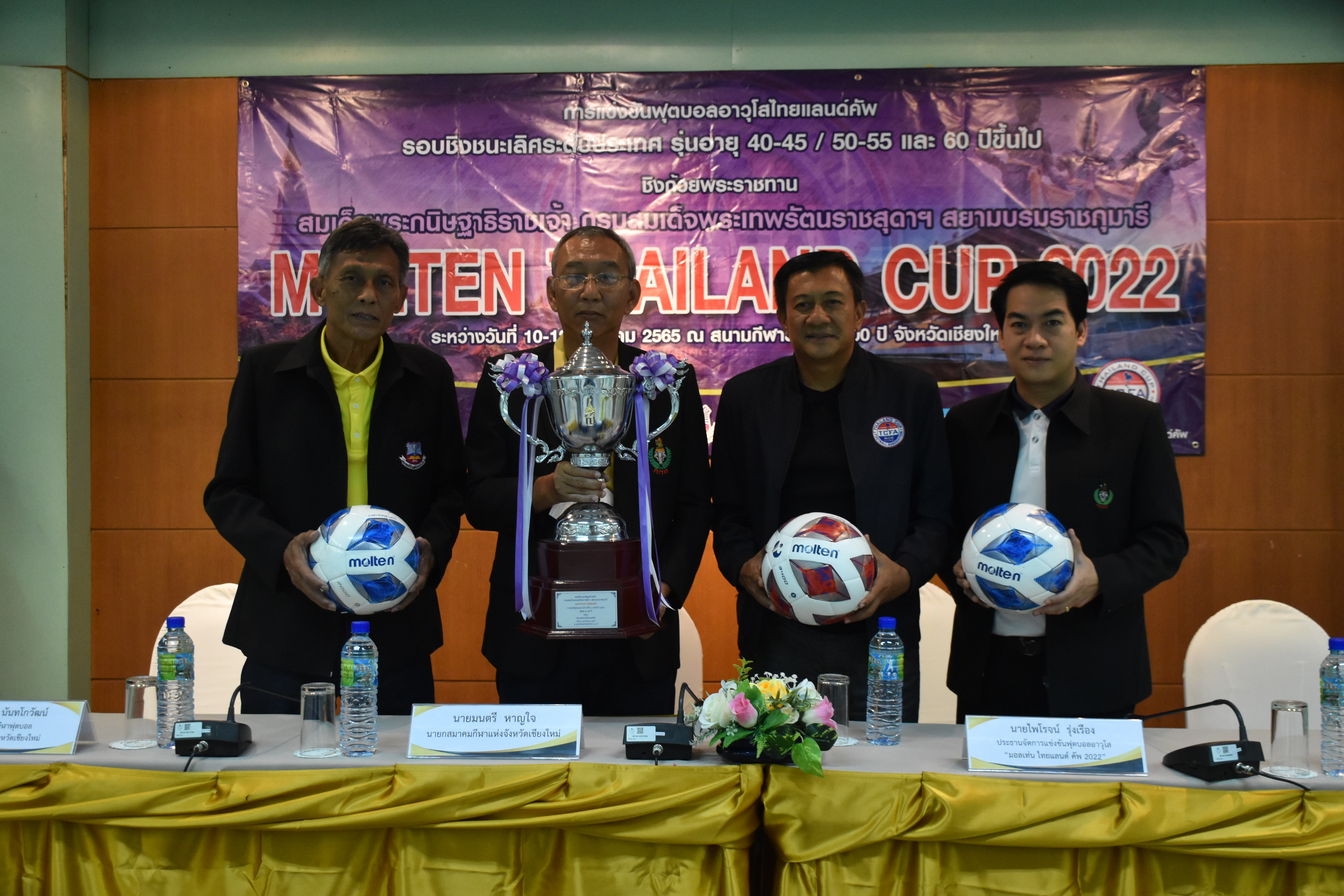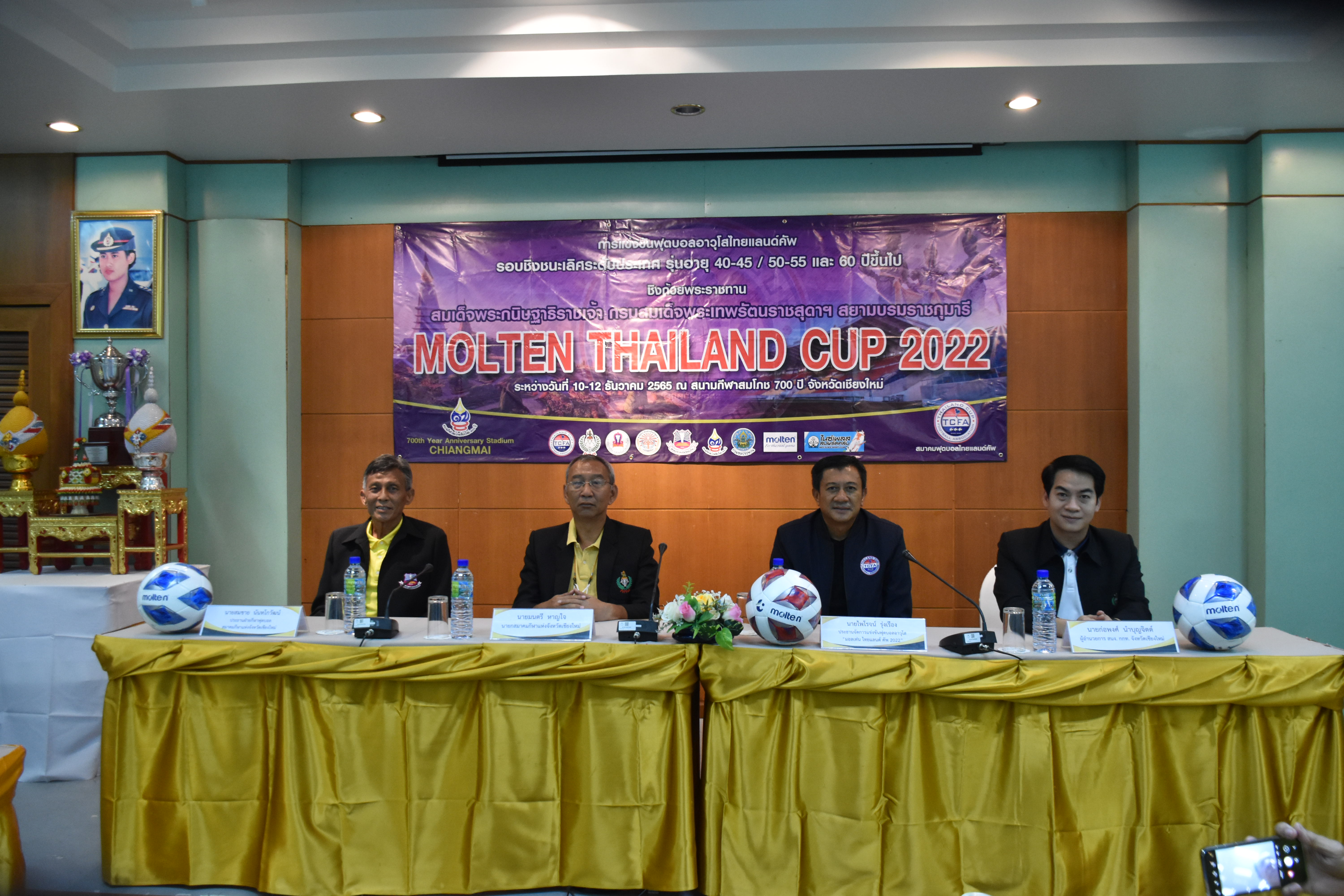 โดยมีผู้ร่วมแถลงข่าวฟุตบอลอาวุโสไทยแลนด์คัพ รอบชิงชนะเลิศระดับประเทศชิงถ้วยพระราชทาน “สมเด็จพระกนิษฐาธิราชเจ้า กรมสมเด็จพระเทพรัตนราชสุดาฯ สยามบรมราชกุมารี” ประกอบด้วยนายไพโรจน์ รุ่งเรือง ประธานจัดการแข่งขันฟุตบอลอาวุโส”มอลเท่น ไทยแลนด์คัพ 2022″ นายมนตรี หาญใจ นายกสมาคมกีฬาแห่งจังหวัดเชียงใหม่ นายก่อพงศ์ นำบุญจิตต์ ผู้อำนวยการการกีฬาแห่งประเทศไทยจังหวัดเชียงใหม่และนายสมชาย นันทโกวัฒน์ ประธานฝ่ายฟุตบอลสมาคมกีฬาแห่งจังหวัดเชียงใหม่