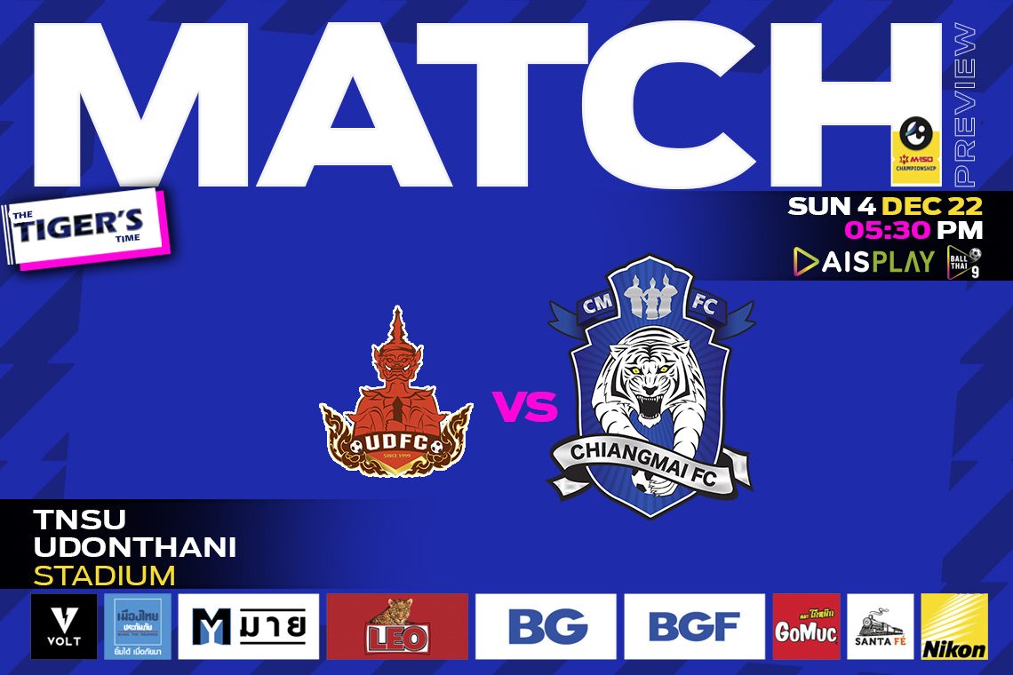 พยัคฆ์ล้านนา ยกพลบุกเยือนแดนอีสาน เจอ อุดรธานี เอฟซี ในการแข่งขัน : M-150 แชมเปี้ยนชิพอุดรธานี เอฟซี (18) – เชียงใหม่ เอฟซี (9)วันอาทิตย์ที่ 4 ธ.ค. 65เวลา : 17:30 น.สนาม : สนามกีฬามหาวิทยาลัยการกีฬาแห่งชาติ วิทยาเขตอุดรธานีถ่ายทอดสด: AIS PLAY BALL THAI 9