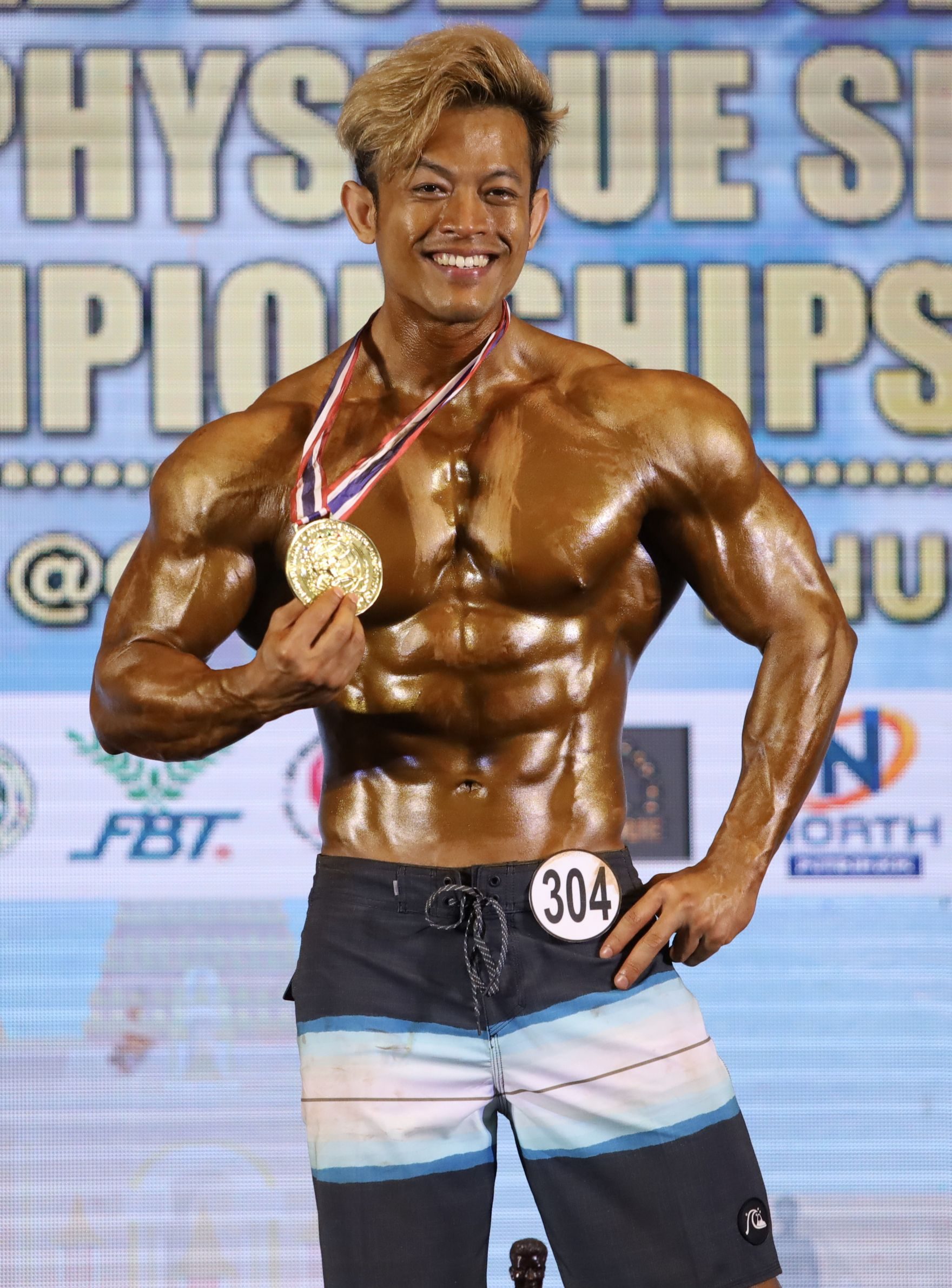 ประเภทแอธเลติกฟิสิคชาย รุ่นความสูงไม่เกิน 175 ซม. “บ่าวไข่เจียว” เอกพล สุขทอง ดีกรีเหรียญทองซีเกมส์ ที่เวียดนาม ได้แชมป์โลกสมัย 2 ที่ 2 คิม โฮ จาง (เกาหลีใต้) ที่ 3 ฮุสเซน ฮิมยาน (มัลดิฟท์) ส่วน ธนกฤต บุญศรี ตกรอบคัดเลือก