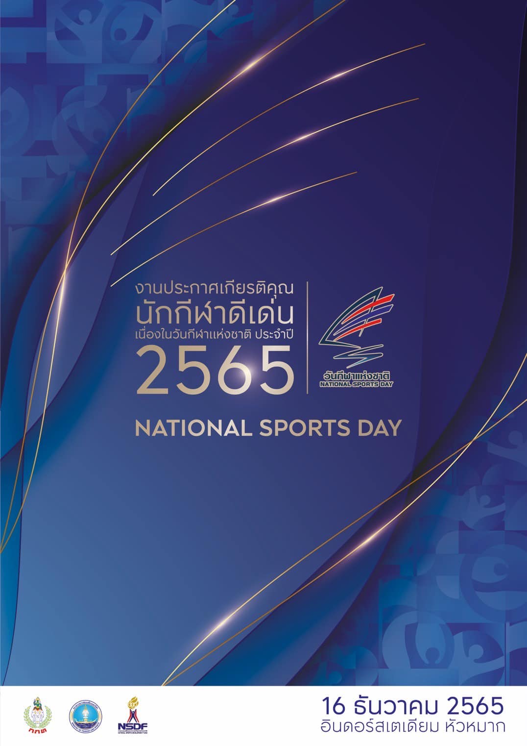 ซึ่งการจัดงานประกาศเกียรติคุณนักกีฬาดีเด่น เนื่องในวันกีฬาแห่งชาติ ประจำปี พ.ศ.๒๕๖๕ นี้ ได้รับเกียรติจากท่านพิพัฒน์ รัชกิจประการ รัฐมนตรีว่าการกระทรวงการท่องเที่ยวและกีฬา เป็นประธานในการมอบรางวัลให้แก่นักกีฬา บุคลากรกีฬา และสมาคมกีฬาดีเด่น ในวันที่ 16 ธันวาคม 2565 ณ อินดอร์สเตเดียม หัวหมาก การกีฬาแห่งประเทศไทย ตั้งแต่เวลา 11.00 น. เป็นต้นไป โดยจะมีการถ่ายทอดสดผ่านสถานีโทรทัศน์และสตรีมมิ่งช่อง T Sports 7
