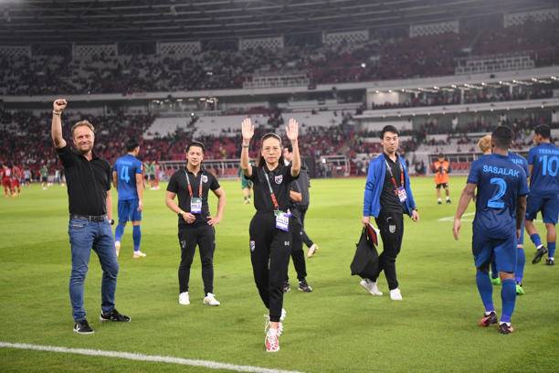 มาดามแป้ง” นางนวลพรรณ ล่ำซำ ผู้จัดการทีมชาติไทย ชื่นชมแข้งช้างศึกแสดงสปิริตไม่ยอมแพ้ หลังเหลือ 10 คน แต่ยังไล่ตีเสมออินโดนีเซีย 1-1 ในศึกฟุตบอลชิงแชมป์อาเซียน 2022 รอบแบ่งกลุ่ม กลุ่มเอ นัดที่ 3 ท่ามกลางแฟนบอลเจ้าบ้านเกือบ 50,000 คน ที่สนามเกโลร่า บุง การ์โน่ (เสนายัน) กรุงจาการ์ตา ประเทศอินโดนีเซีย เมื่อวันที่ 29 ธันวาคม