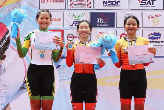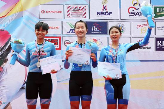 สปรินท์ รุ่นประชาชนหญิง ที่ 1 ร.ต.ท.หญิง พรรณรายณ์ ราษี ทีมสำนักงานตำรวจแห่งชาติ-โกกิ, ที่ 2 ส.ต.หญิง กัญญารัตน์ หน่อแก้ว ทีมสำนักงานปลัดกระทรวงกลาโหม, ที่ 3 น.ส.ณัฐภรณ์ อภิโมทย์ นักปั่นสาวทีมชาติไทยชุดเตรียมเอเชี่ยนเกมส์ ครั้งที่ 19 จากทีมฟิชเชอร์แมนเฟรนด์ เชียงใหม่