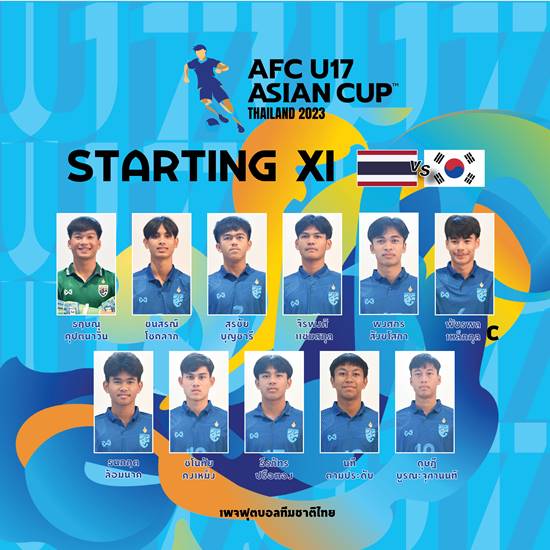 11 ตัวจริง ทีมชาติไทย U17 🇹🇭 พบ เกาหลีใต้ การแข่งขันฟุตบอลชิงแชมป์เอเชีย รุ่นอายุไม่เกิน 17 ปี รอบสุดท้าย รอบก่อนรองชนะเลิศ