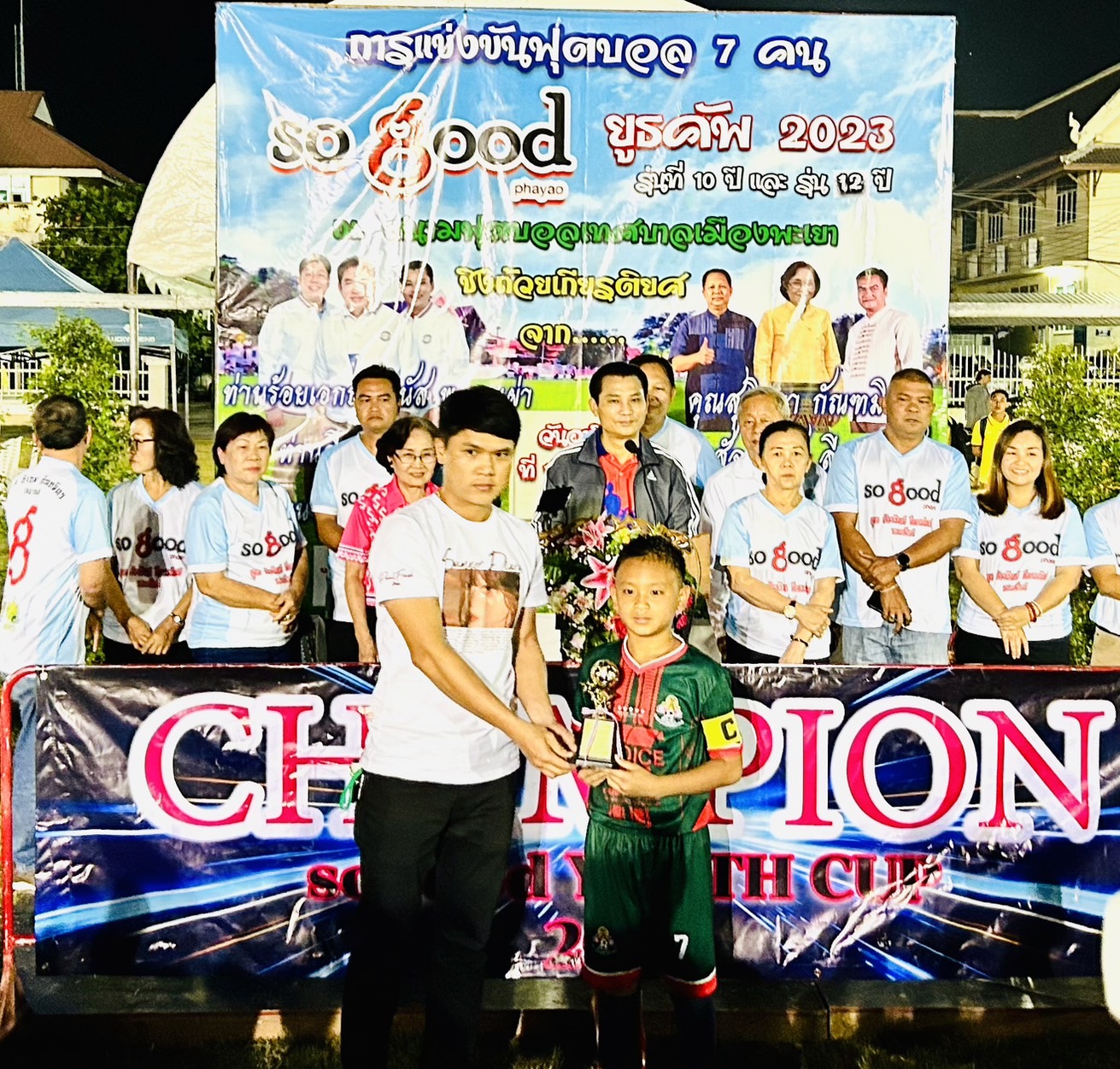 แข้งละอ่อน เยาวชน โครงการ ฝายฟุตบอล คว้าแชมป์ 10 ปี ในการแข่งขันฟุตบอล 7 คน รายการ SOGOOD YOUT CUP เทศบาลเมืองพะเยา จ.พะเยา รุ่นอายุไม่เกิน 10 ปี มีทีมเข้าร่วมแข่งขัน 12 ทีม
