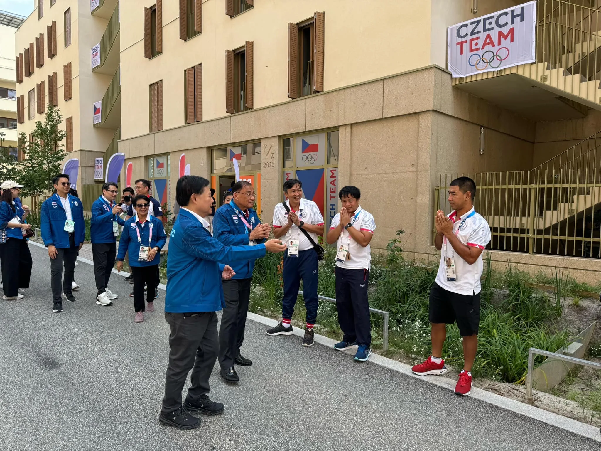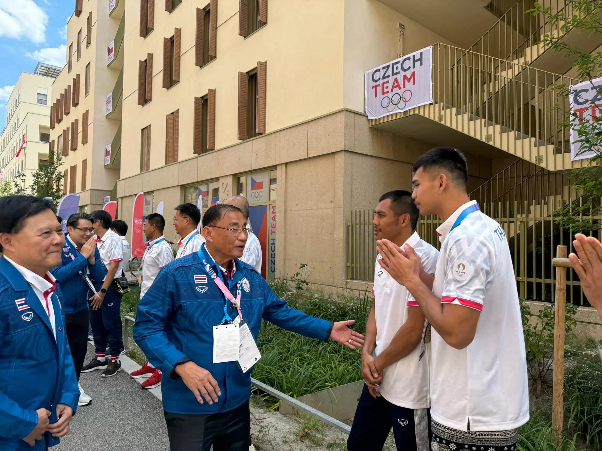 นายธนา ไชยประสิทธิ์ หัวหน้านักกีฬาไทย นายจิรวัฒน์ อรัณยกานนท์ ที่ปรึกษารัฐมนตรีว่าการกระทรวงการท่องเที่ยวและกีฬา, เพ็ญพิสุทธิ์ จินตโสภณ เลขานุการรัฐมนตรีกระทรวงการท่องเที่ยวและกีฬา และคณะผู้บริหาร เข้าตรวจเยี่ยมและให้กำลังใจกับนักกีฬาและคณะเจ้าหน้าที่ทีมชาติไทยที่เข้าร่วมทำการแข่งขันกีฬาโอลิมปิกเกมส์ ครั้งที่ 33 ภายในหมู่บ้านนักกีฬา ณ กรุงปารีส ประเทศฝรั่งเศส เมื่อวันพฤหัสบดีที่ 25 กรกฎาคม 2567 ที่ผ่านมา