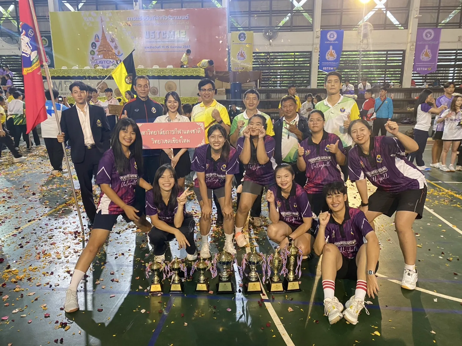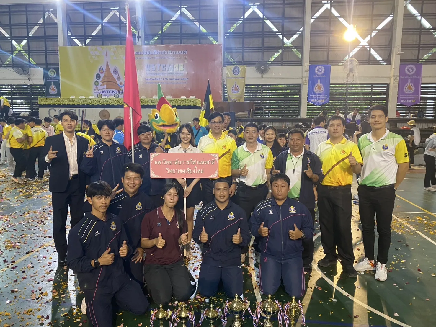 เมื่อวันอาทิตย์ที่ 15 ธันวาคม 2567 เวลา 16:00.น นายนรินทร์ แสงศรีจันทร์ รองอธิการบดีมหาวิทยาลัยการกีฬาแห่งชาติ วิทยาเขตเชียงใหม่ มอบหมายให้ ดร.อลงกรณ์ นำบุญจิตต์ ผู้ช่วยอธิการบดีฝ่ายกิจการนักศึกษาและกิจการพิเศษ , อาจารย์วิฑูรย์ โพธิ์ทิพย์ รักษาการในตำแหน่ง รองคณบดีคณะวิทยาศาสตร์การกีฬาและสุขภาพ , อ.พีรพล นวพันจิรา, อ.สมชาย บุญลอย, อ.วัชระ บุญมาก และ อ.ธนายงค์ บุญยวง เข้าร่วมพิธีปิดการแข่งขันกีฬาทัวร์นาเมนต์ของมหาวิทยาลัย ในจังหวัดเชียงใหม่ ครั้งที่ 12 USTCM2024 ณ โรงยิมมหาวิทยาลัยราชภัฏเชียงใหม่ ที่เป็นเจ้าภาพจัดการแข่งขันในปีนี้