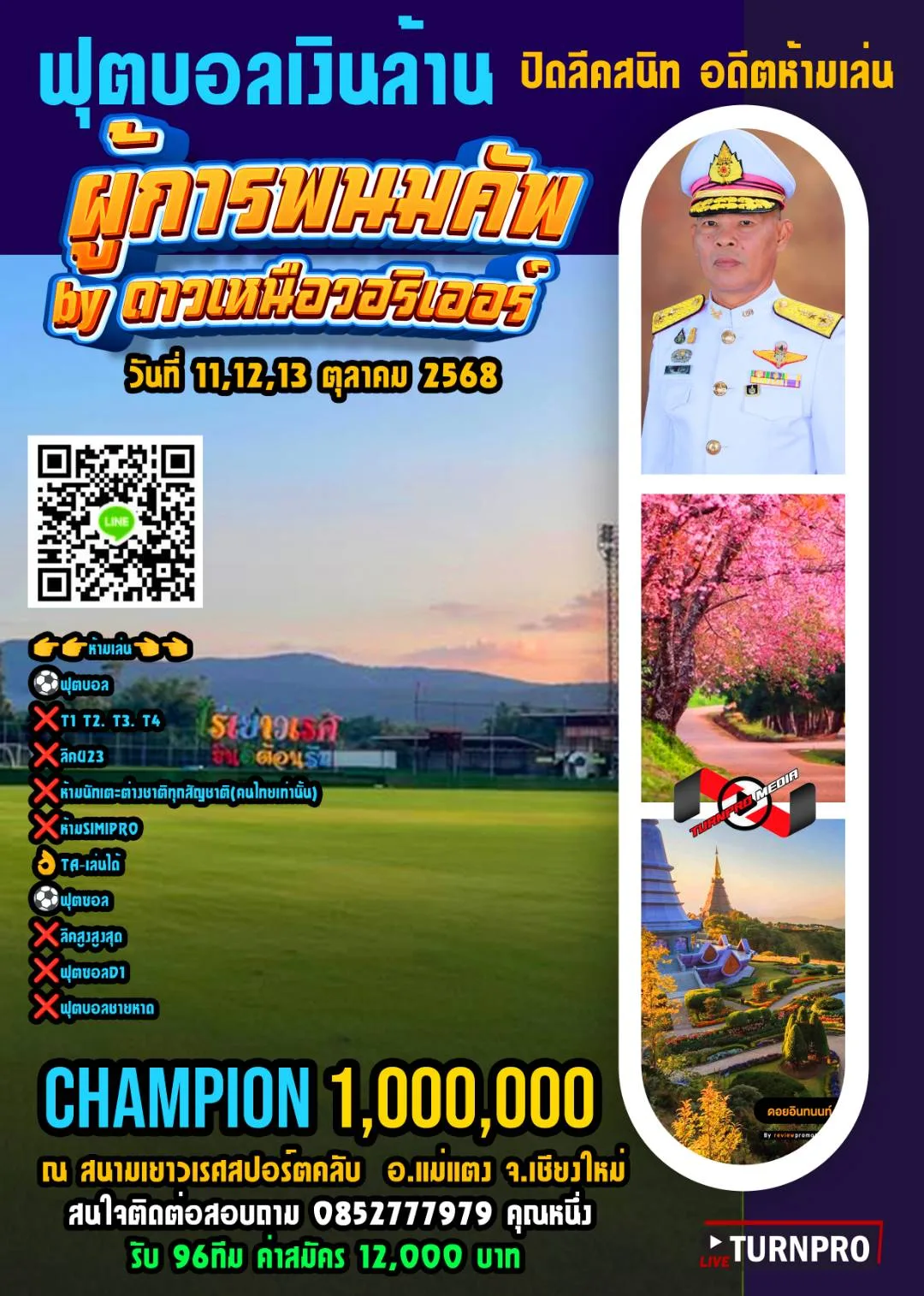 มาแล้วกลับมาอย่างยิ่งใหญ่ ฟุตบอลเงินล้าน ชิงเงินรางวัลมากที่สุดในระดับภูมิภาค ที่สนาม ไร่เยาวเรศ สปอร์ตคลับ อ. แม่แตง เตรียมดวลแข้ง 11-12-13 ตุลาคม 2568 เปิดรับสมัครแค่ 96 ทีมเท่าน นั้น ห้ามนักเตะทุกลีกลงสนาม เวลานี้ มีทีมจากทั้วประเทศสมัครมาแล้ว 79 ทีม ยังขาดอีกไม่กี่ทีมจะครบตามเป้า เปิดโอกาสทีมที่มีความพร้อมมาได้ สนามไร่เยาวเรศ มีที่พักครบวงจร นักเตะจากต่างจังหวัดที่จะมามาจองก่อนได้ก่อนถ้าช้าเต็มแน่นอน