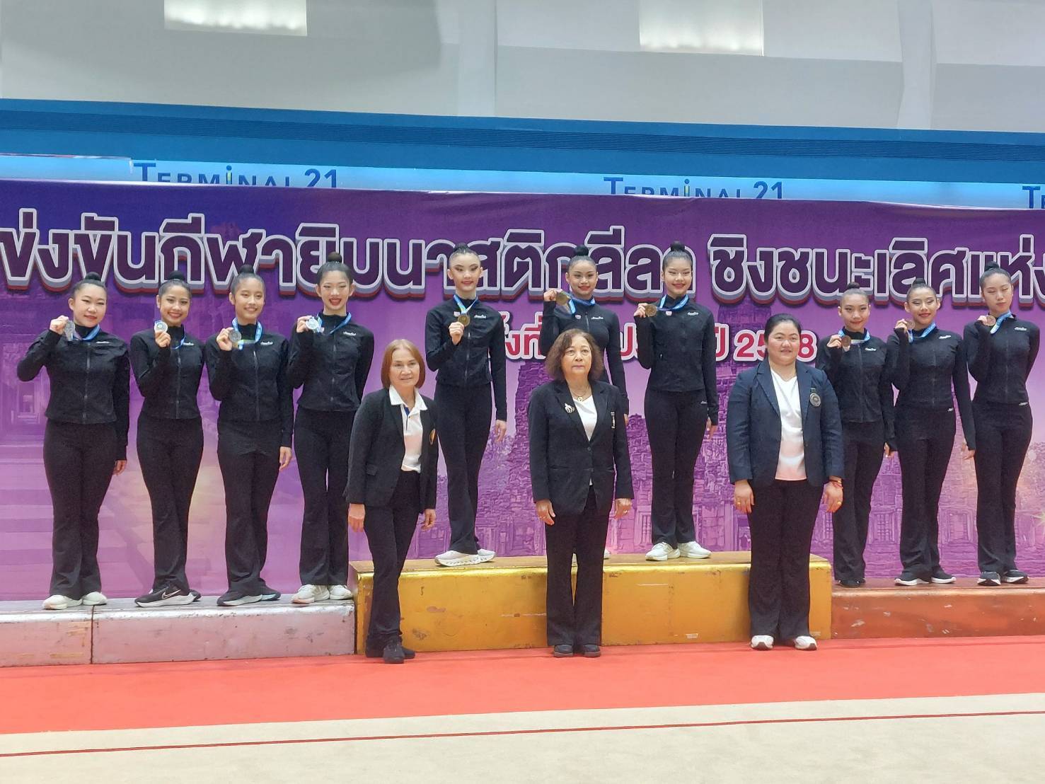 สรุปเหรียญทองประเภททีมตกเป็นของ ทีมสโมสรจินตนา A 221.200 คะแนน / เหรียญเงิน สโมสรยิมมาสเตอร์ 205.000 คะแนน / เหรียญทองแดง สโมสรจินตนา B 202.300 คะแนน