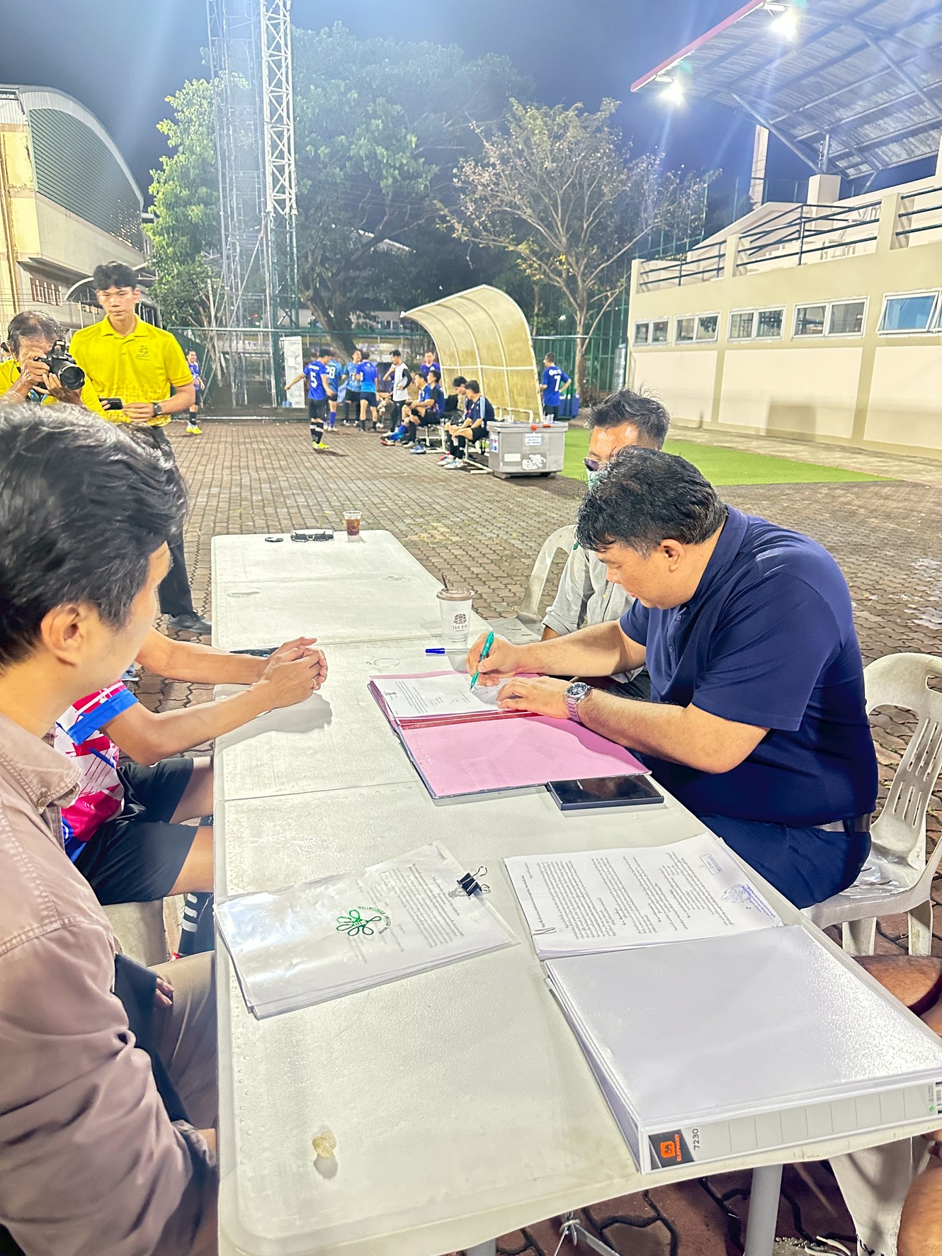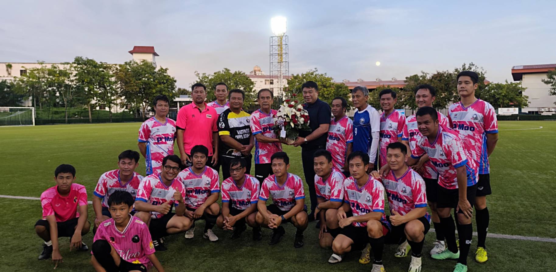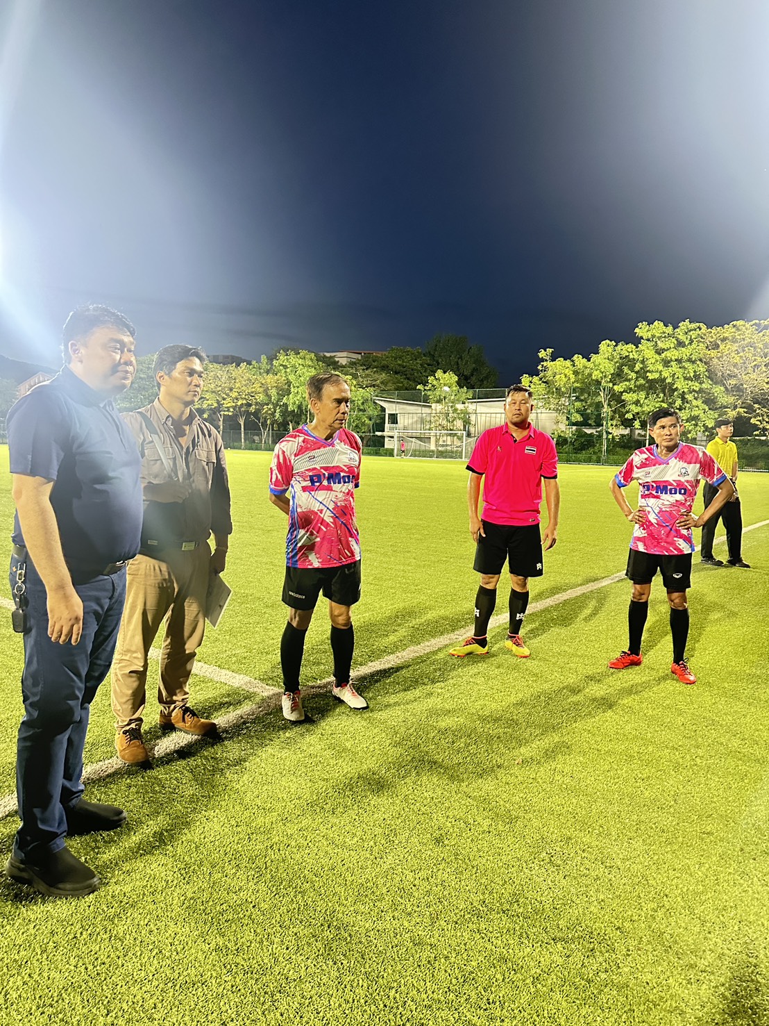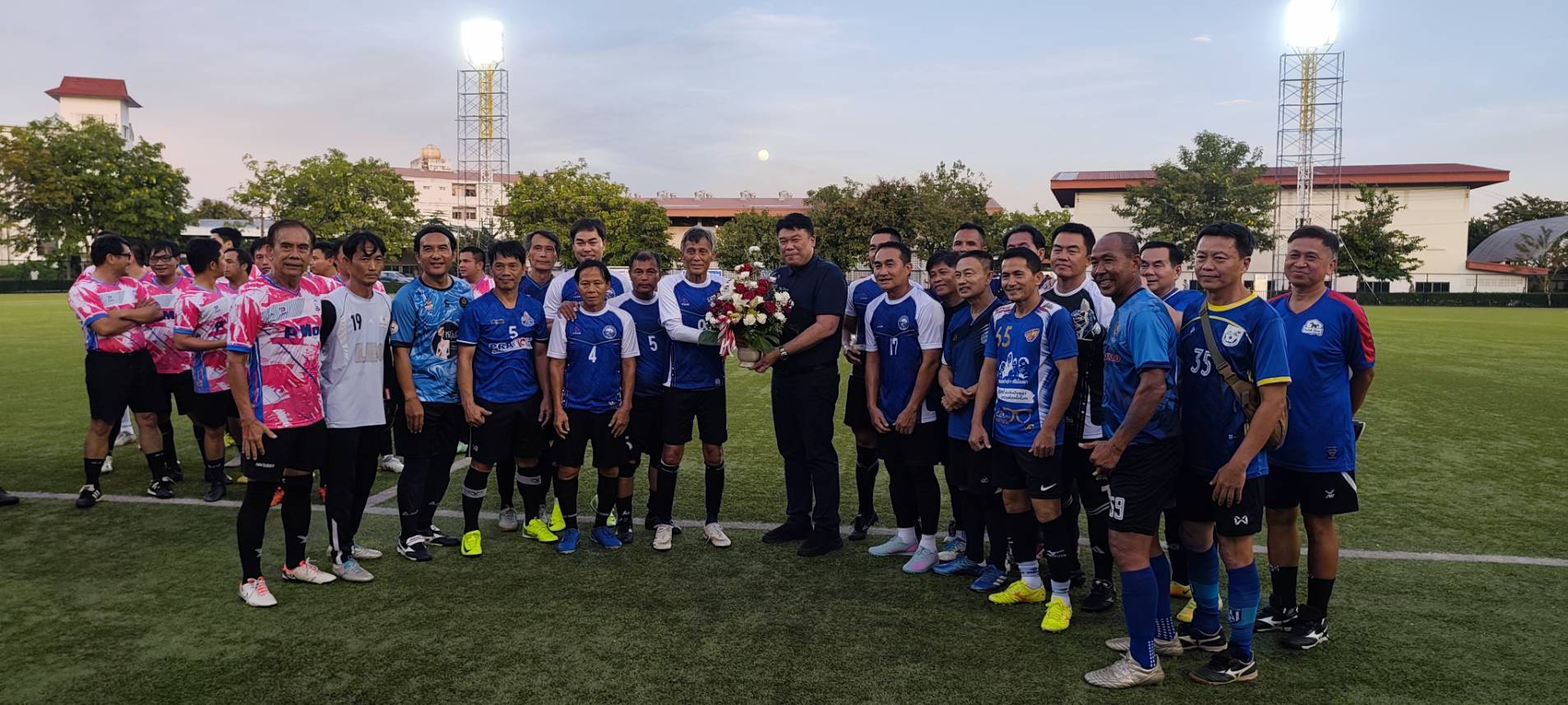 อาวุโสสิงห์เหนือ -อาวุโสฝ่ายฟุตบอล ร่วมแสดงความยินดีกับ รองนรินทร์ ลงสนามดวลแข้งทดสอบระบบไฟฟ้า