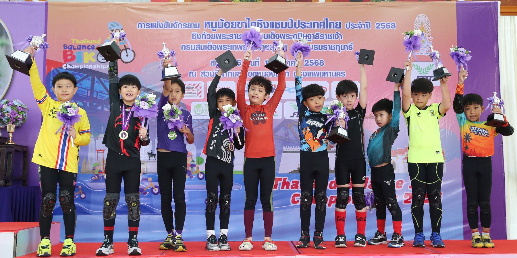 ปิดฉากจักรยานหนูน้อยขาไถชิงแชมป์ประเทศไทย ชิงถ้วยพระราชทานฯ ประจำปี 2568 มีนักกีฬารุ่นจิ๋วแห่รวมชิงชัยกว่า 500 คน ด้าน “เสธ.หมึก” เผยสมาคมกีฬาจักรยานฯ จะพิจารณานักกีฬาที่คว้าแชมป์ไปแข่งขันหนูน้อยขาไถชิงแชมป์เอเชียรายการ 2026 “Asian Balance Bike Championships by BATAC” ในเดือน พ.ค.69 โดยจะคัดเลือกตามกฎระเบียบของสหพันธ์จักรยานแห่งเอเชีย (ACC) และมีการจัดแข่งขันในประเภทชาลเลนจ์ด้วย ส่วนเป้าหมายในกีฬาซีเกมส์ ครั้งที่ 33 คาดว่าจะเป็นไปตามแผนคือ 6-7 เหรียญทอง