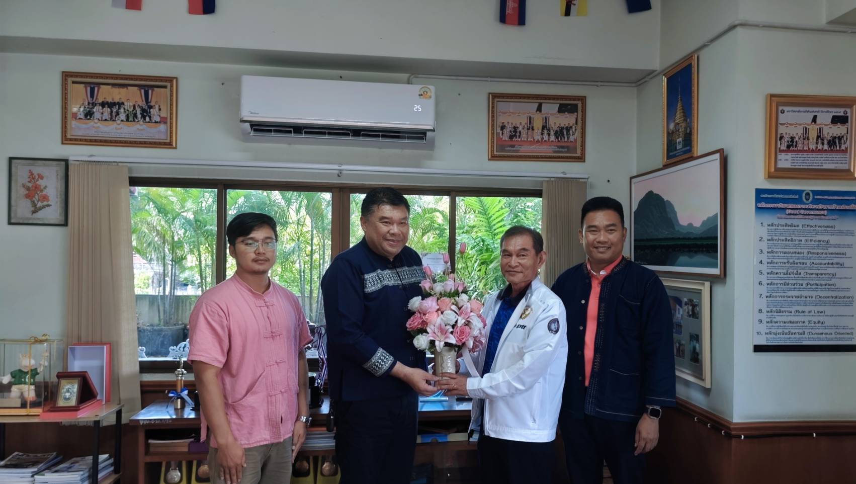 สองหน่วยโรงเรียนกีฬาจังหวัดเชียงใหม่ และ หัวหน้าฝ่ายกีฬาเรือพาย จังหวัดเชียงใหม่ ร่วมแสดงความยินดีกับรองอธิการบดีประจำวิทยาเขตเชียงใหม่ จ่าเอกวิทยา คงรส ปฏิบัติหน้าที่แทนผู้อำนวยการโรงเรียนกีฬาจังหวัดเชียงใหม่ พร้อมด้วย ผอ. ยุทธพร วงศ์วิชิต ประธานฝ่ายเรือพายสมาคมกีฬาจังหวัดเชียงใหม่ และ ดร.กิตติ์นิพัทธ์ สุขะจิรโชติ รองผู้อำนวยการฝ่ายบริหาร