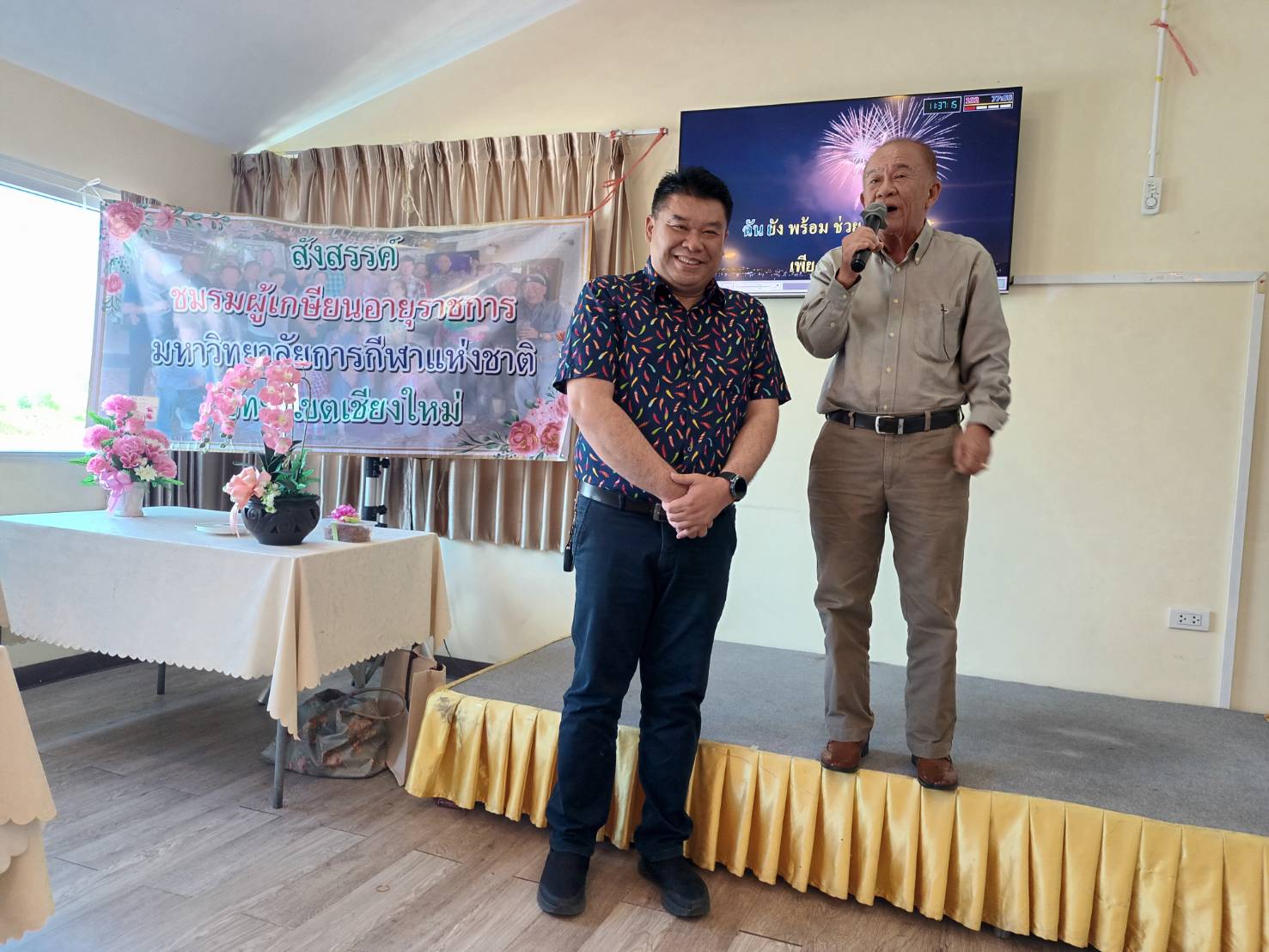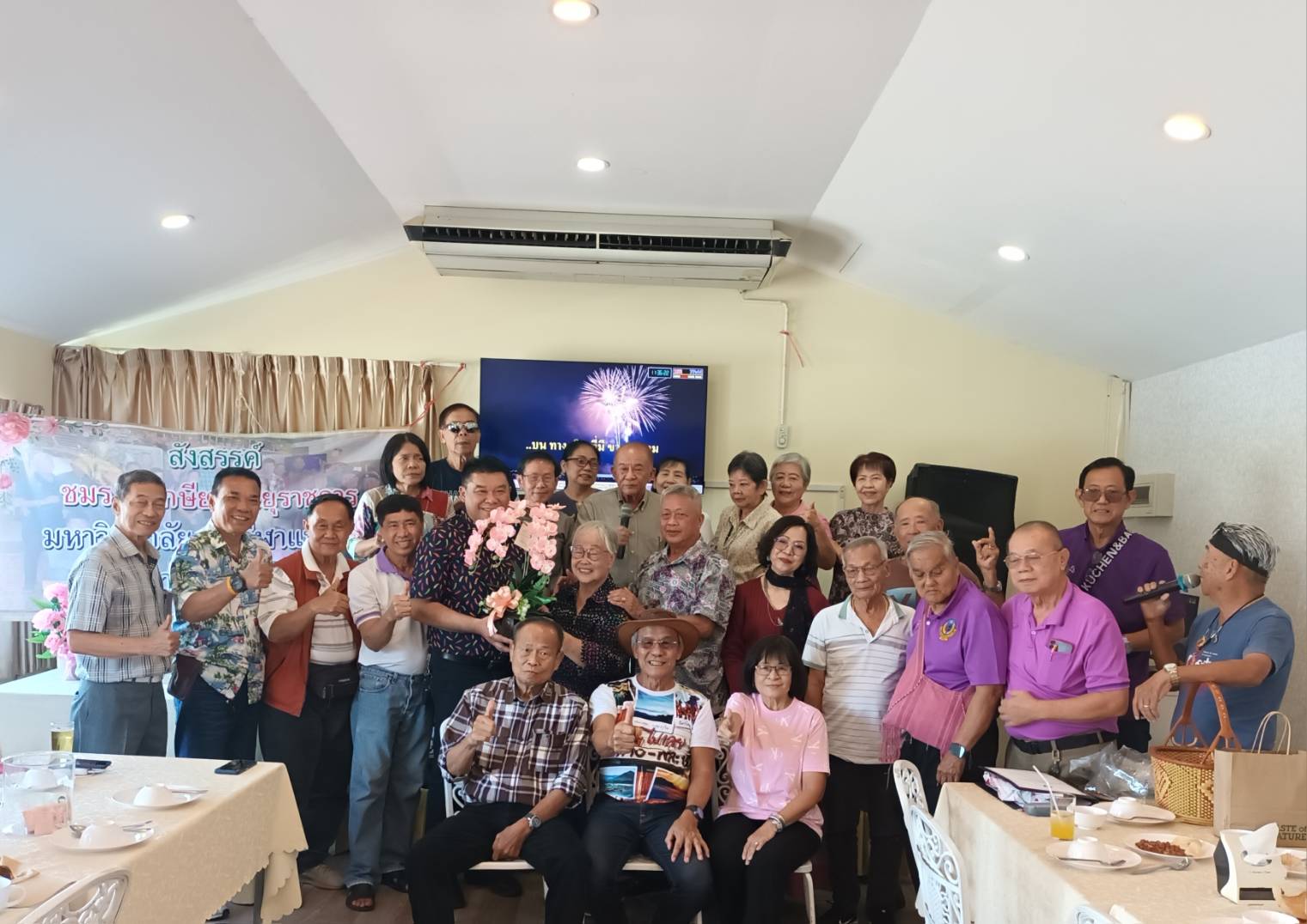 ชมรมผู้เกษียณอายุราชการ มหาวิทยาลัยการกีฬาแห่งชาติ วิทยาเขตเชียงใหม่ นำโดย ท่านทินกร นำบุญจิตต์ และอาจารย์ อาวุโส ได้ร่วมแสดงความยินดี พร้อมมอบกระเช้าดอกไม้ให้กับ นายนรินทร์ แสงศรีจันทร์ ในโอกาสที่ได้รับการแต่งตั้งให้ดำรงตำแหน่งรองอธิการบดีมหาวิทยาลัยการกีฬาแห่งชาติ ประจำวิทยาเขตเชียงใหม่ ณ ห้องอาหารเรือนแพ 2