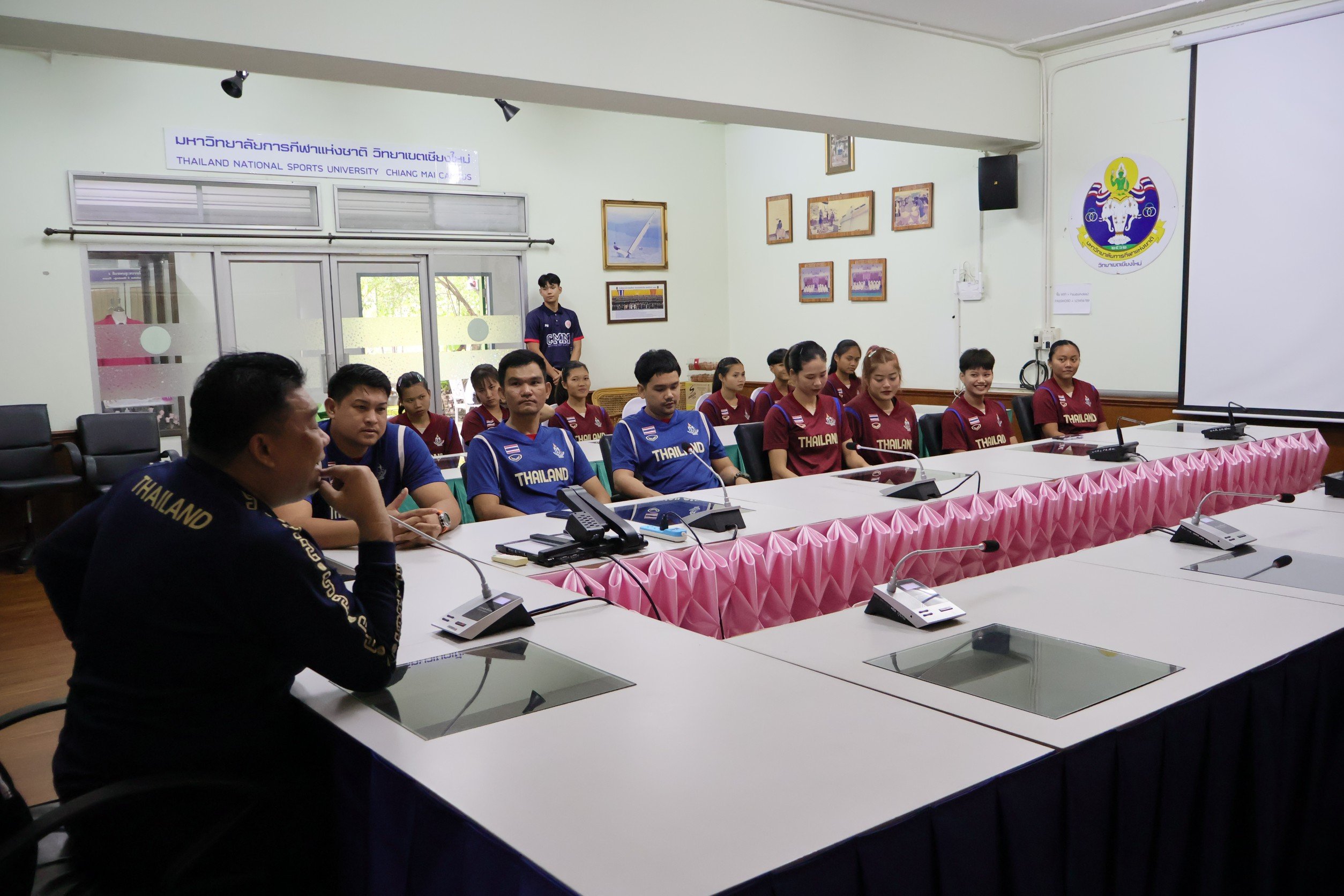 วันที่ 14 ตุลาคม 2568 เวลา 15.00 น. นายนรินทร์ แสงศรีจันทร์ รองอธิการบดีมหาวิทยาลัยการกีฬาแห่งชาติ ประจำวิทยาเขตเชียงใหม่ เปิดบ้านต้อนรับนักกีฬาแฮนดืบอลทีมหญิง พร้อมสต๊าฟโค้ช ให้โอวาทพร้อมมอบเครื่องดื่มและขนมเพื่อเป็นขวัญกำลังใจแก่นักกีฬาแฮนด์บอลหญิงทีมชาติไทย ชุดเตรียมทีมสำหรับการแข่งขันกีฬาซีเกมส์ ครั้งที่ 33 ซึ่งจะจัดขึ้นที่ประเทศไทย ระหว่างวันที่ 9–20 ธันวาคม พ.ศ. 2568