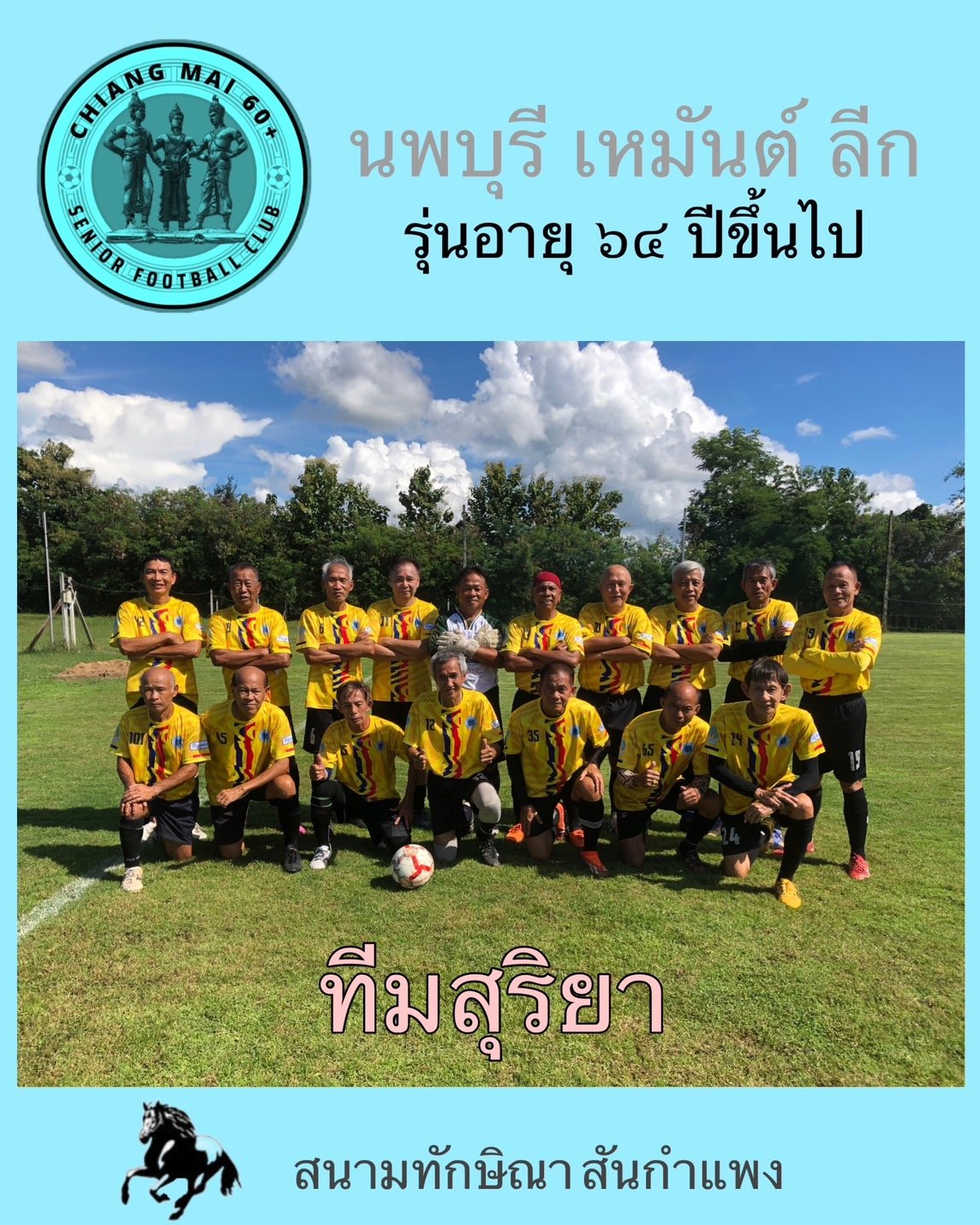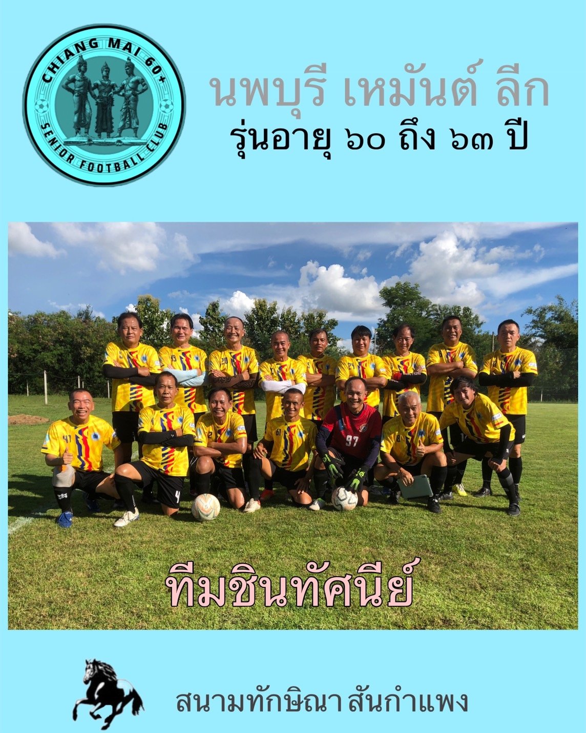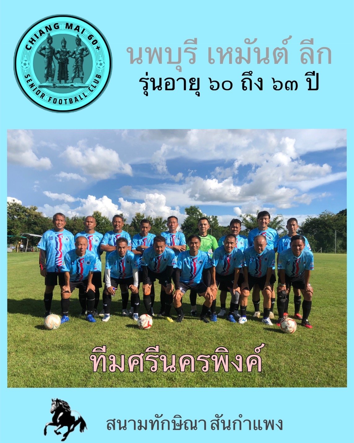 ทีมที่เข้าร่วมในรุ่นอายุ 60-63 ทีมทิพย์เนตร ทีมชินทัศนีย์ ทีมศรีนครพิงค์ ทีมศรีวิศาล ในรุ่นอายุ 64 ขึ้นไปมี 4 ทีม ประกอบด้วย ทีมสุริวงศ์ ทีมฟ้าธานี ทีมสุริยง ทีมสุริยา แข่งแบบเหย้าเยือน ทุกวันพฤหัสบดี ที่สนามทักษิณา เอฟซี