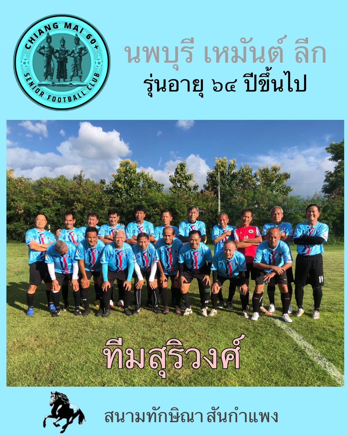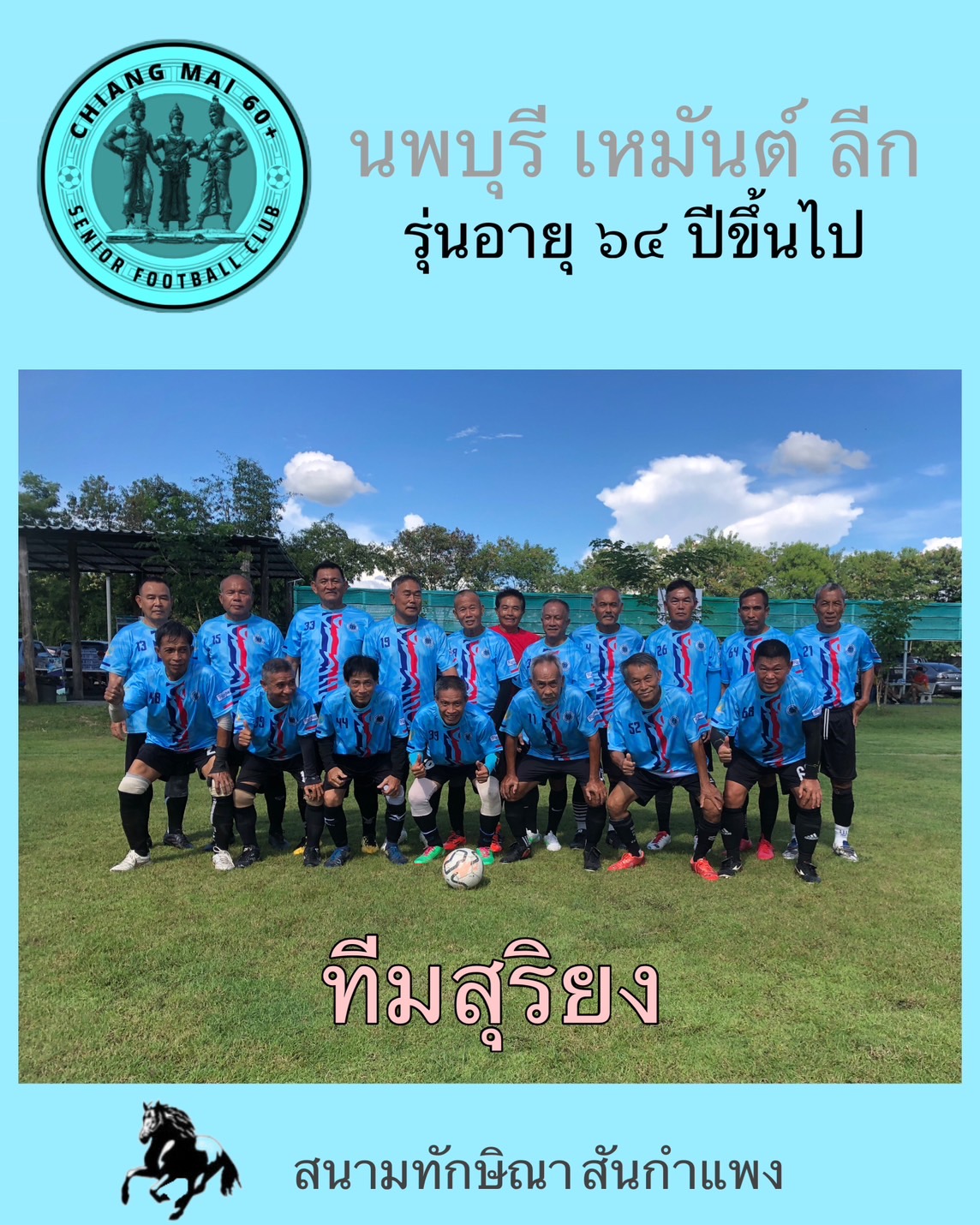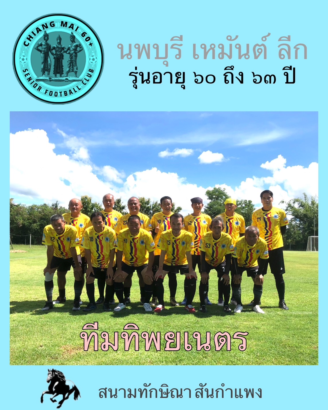 ทีมที่เข้าร่วมในรุ่นอายุ 60-63 ทีมทิพย์เนตร ทีมชินทัศนีย์ ทีมศรีนครพิงค์ ทีมศรีวิศาล ในรุ่นอายุ 64 ขึ้นไปมี 4 ทีม ประกอบด้วย ทีมสุริวงศ์ ทีมฟ้าธานี ทีมสุริยง ทีมสุริยา แข่งแบบเหย้าเยือน ทุกวันพฤหัสบดี ที่สนามทักษิณา เอฟซี