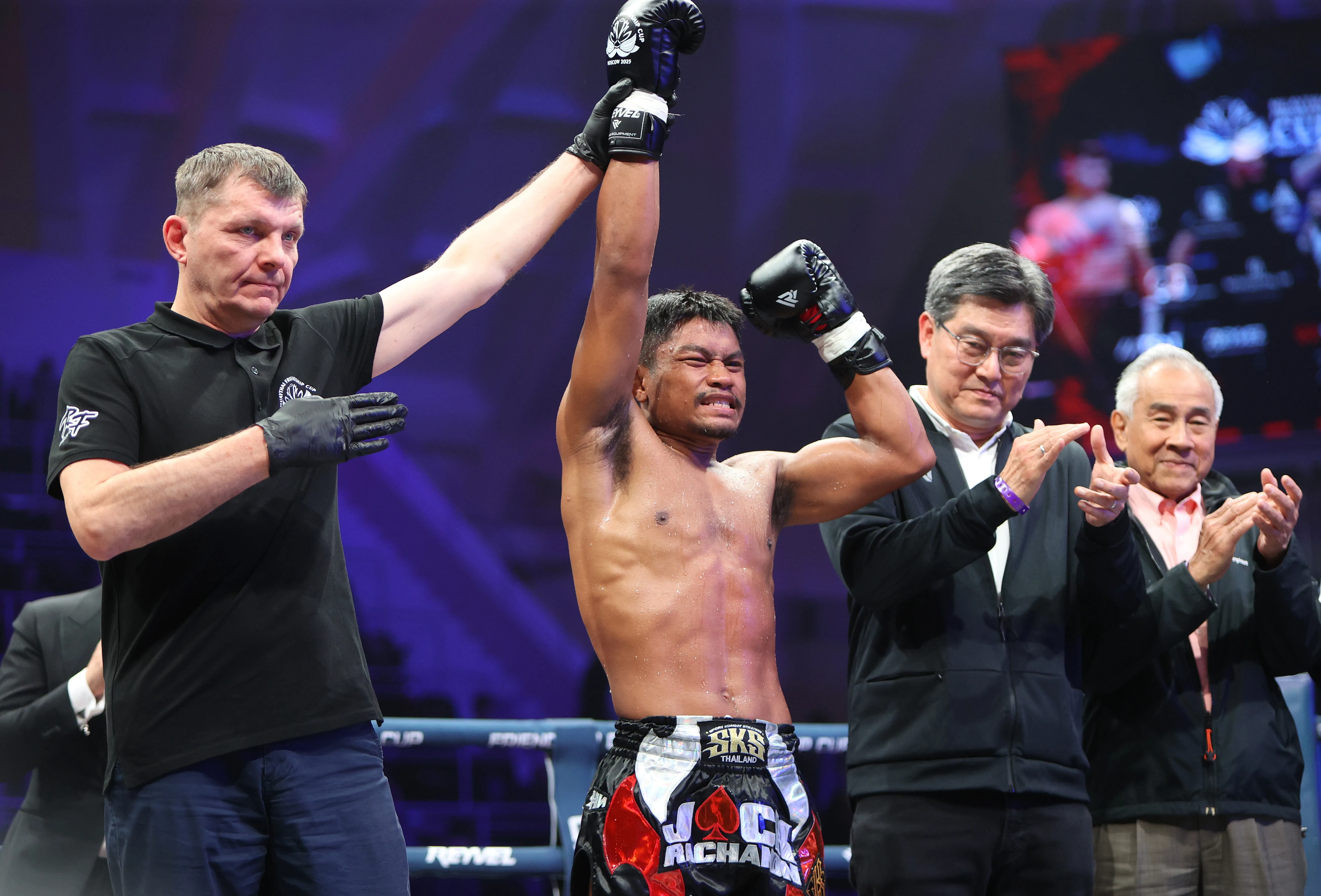 ดร.สุทิน คลังแสง นายกสมาคมส่งเสริมกีฬาทหาร (ประเทศไทย) มอบหมายให้ผู้แทนนายกสมาคมฯ พล.ต.นิรินธน์ ปุณโณทก เลขานุการ สมาคมส่งเสริมกีฬาทหาร (ประเทศไทย), ร้อยเอก สมบัติ บัญชาเมฆ (บัวขาว) และ ว่าที่ ร.ท. ธีรวัฒน์ ยิ้วยิ้ม ปฎิคม สมาคมส่งเสริมกีฬาทหาร (ประเทศไทย) เป็นผู้แทนไปร่วมดำเนินการการจัดการแข่งขัน “มวยไทย เฟรนด์ชิพ คัพ 2025” ระหว่างวันที่ 14-18 ตุลาคมที่ผ่านมา ที่สนามกีฬาลุจนีกี กรุงมอสโก ประเทศรัสเซีย
