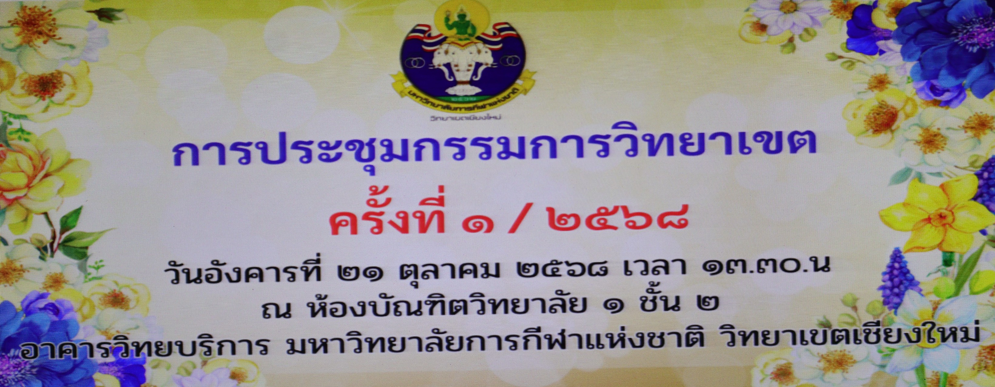 รองนรินทร์ นั่งหัวโต๊ะประธานประชุม คณะกรรมการ วิทยาเขต และกรรมการวิทยาเขตผู้ทรงคุณวุฒิ จากภายนอกเข้าร่วมประชุม ครั้งที่ 1 /2568 ณ ห้องบัณฑิต วิทยาลัย 1 ชั้น 2 อาคารวิทยบริการ มหาวิทยาลัยการ กีฬาแห่งชาติประจำวิทยาเขต เชียงใหม่ หลังจากที่ได้ที่มีการลงนามแต่งตั้ง กรรมการผู้ทรงคุณวุฒิ
