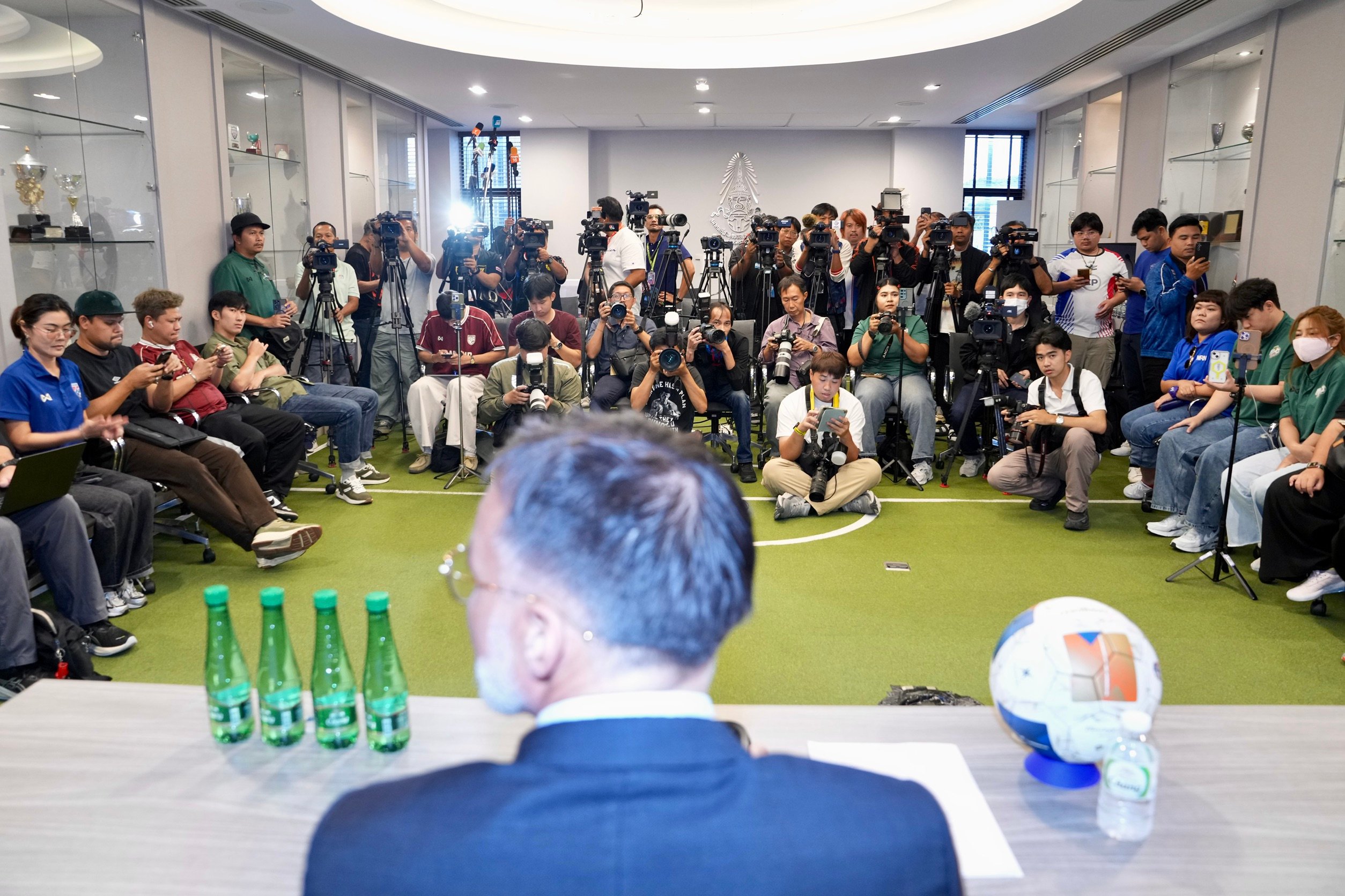 วันที่ 23 ตุลาคม 2568 เวลา 13.30 น. ณ ห้องประชุม ชั้น 2 อาคาร FA Thailand สมาคมกีฬาฟุตบอลแห่งประเทศไทย ในพระบรมราชูปถัมภ์ จัดงานแถลงข่าวเปิดตัว “แอนโธนี ฮัดสัน” หัวหน้าผู้ฝึกสอนฟุตบอลชายทีมชาติไทย ชุดใหญ่ อย่างเป็นทางการ