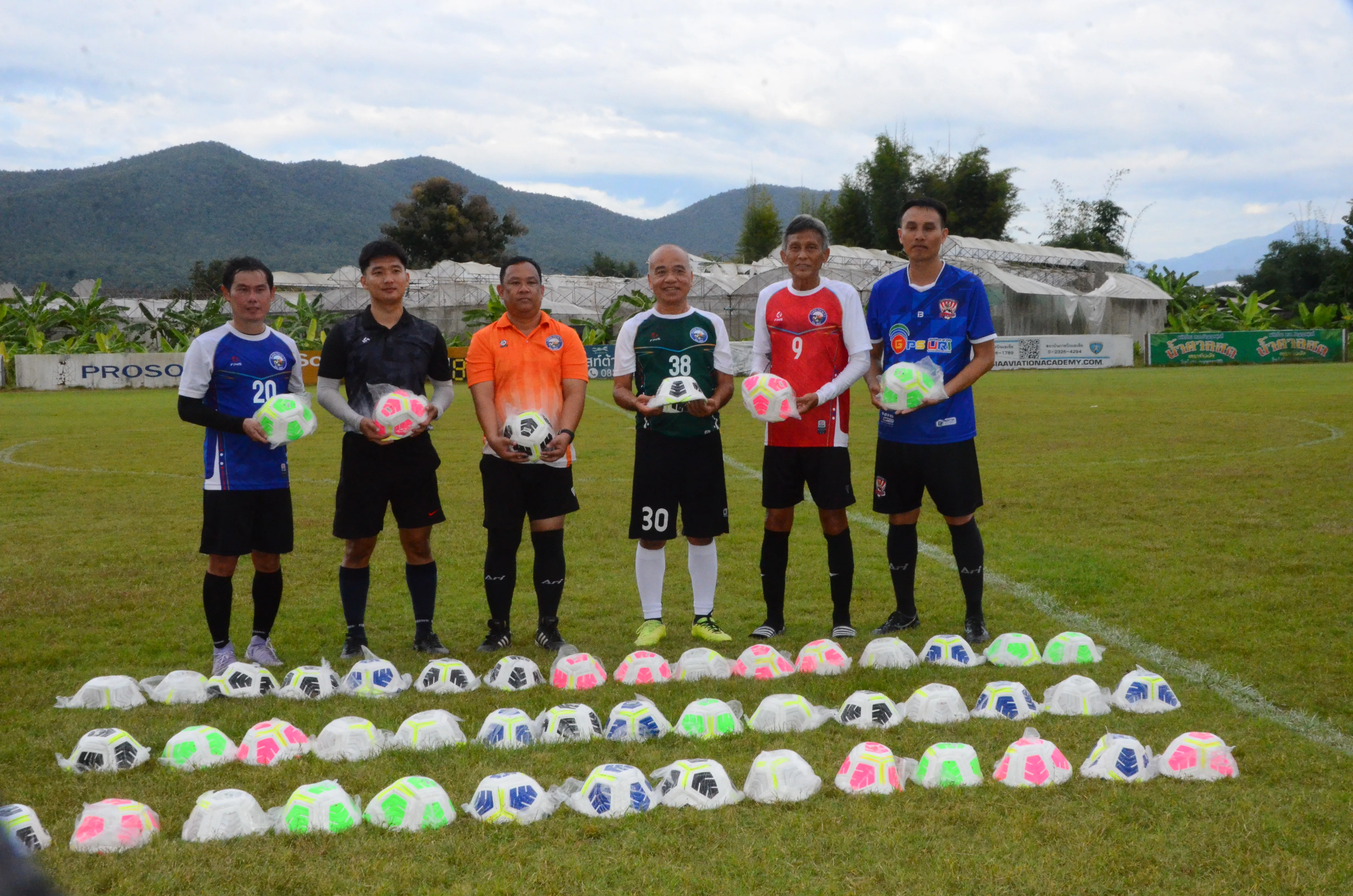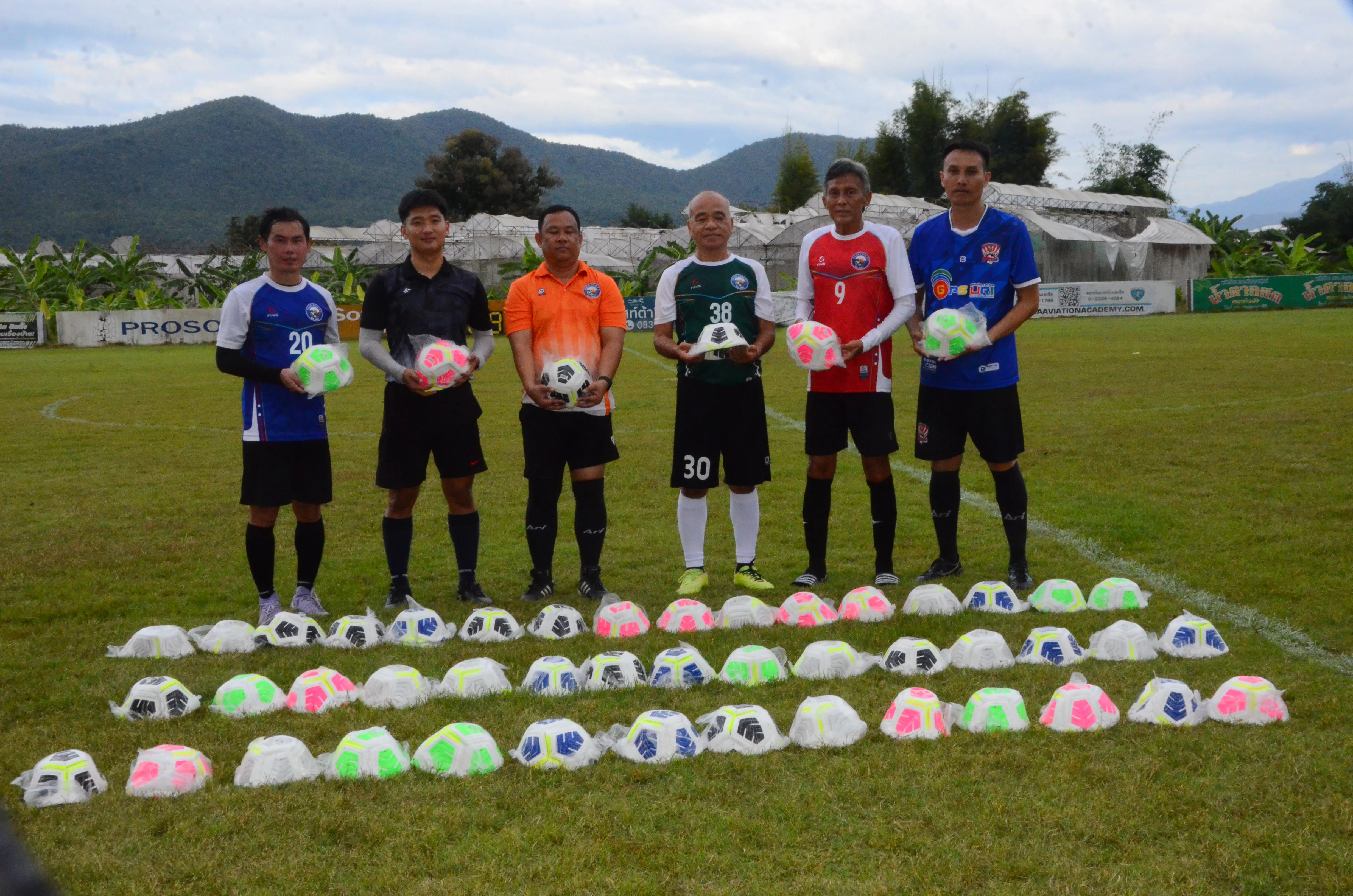 สนามดัชฟาร์มสันกำแพง จัดดวลลูกหนังระหว่างสมาชิก ประจำปี 68 มอบลูกฟุตบอลให้ ร.ร.ในสันกำแพง