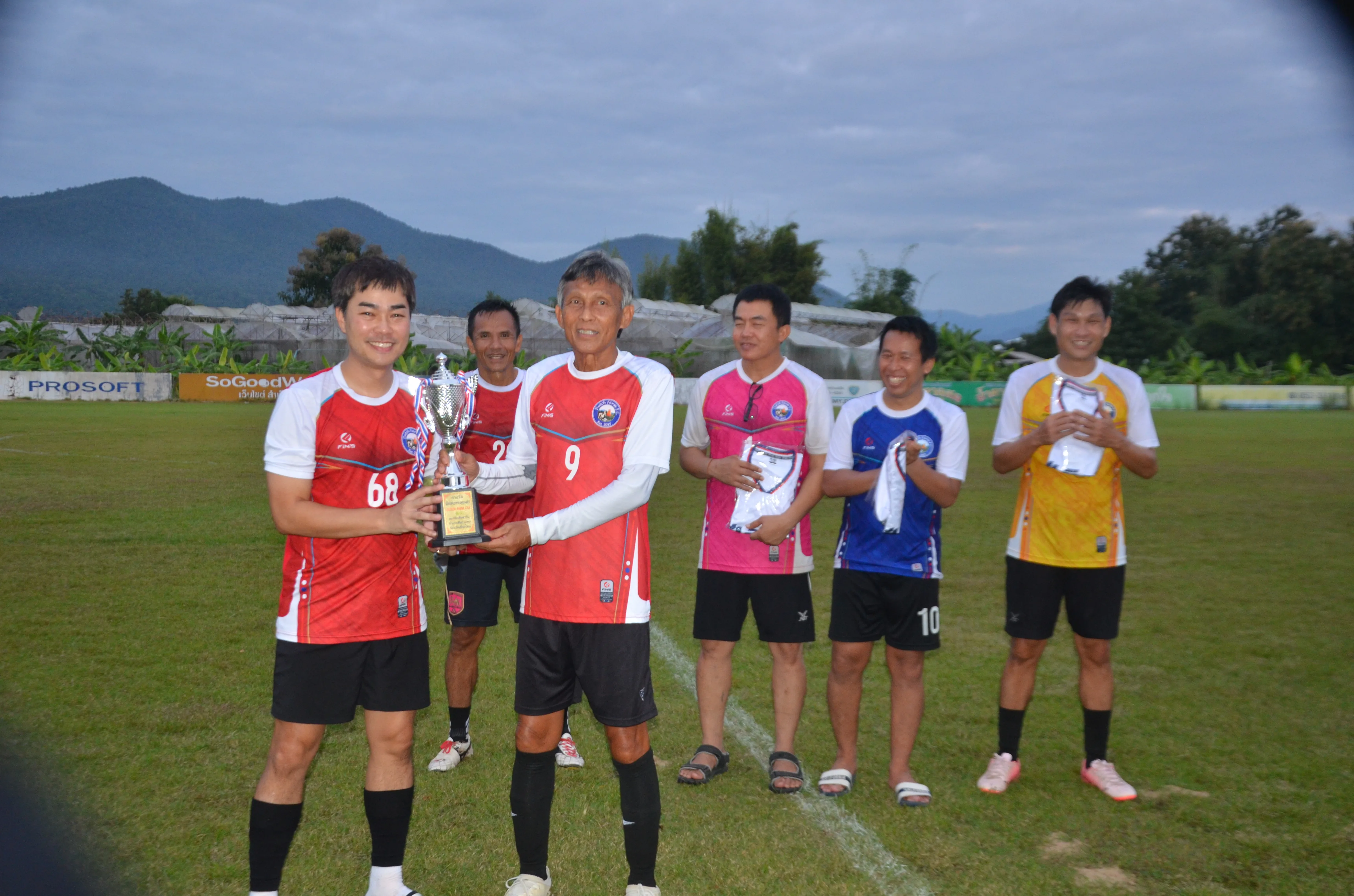 นายสมชาย นันทโกวัฒน์ . ประธานฝ่ายฟุตบอลสมาคมกีฬาแห่งจังหวัดเชียงใหม่ นำทีม.คณะกรรมการบริหารสนามดัชฟาร์ม สันกำแพง จัดการแข่งขัน ฟุตบอล ของสมาชิกสนามดัชฟาร์ม ประจำปี 2568 ในงาน มีกิจกรรม สำหรับสมาชิก .แบ่งทีม สมาชิก 4 ทีม 4 สี แข่งขันฟุตบอล แบบพบกันหมด โดยจับฉลากประกบคู่แต่ละสี เอาทีมที่ชนะนัดแรก มาชิงชนะเลิศ ปรากฏว่าปีนี้ ทีมสีแดง ที่นำทีมโดย สมชาย คว้าแชมป์ไปครอง …น.ท.ชาญยุทธ ภู่มณี มอบถ้วยชนะเลิศ