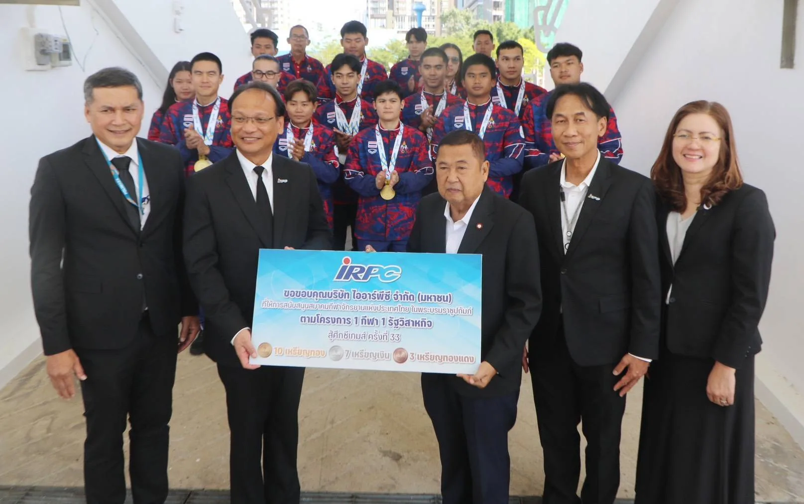 “เสธ.หมึก” พลเอกเดชา เหมกระศรี รองประธานสมาพันธ์จักรยานแห่งเอเชีย (ACC), ประธานสหพันธ์จักรยานแห่งอาเซียน (ACF) และนายกสมาคมกีฬาจักรยานแห่งประเทศไทย ในพระบรมราชูปถัมภ์ พร้อมนักกีฬาทีมชาติไทย ให้การต้อนรับ นายเทอดเกียรติ พร้อมมูล ประธานเจ้าหน้าที่บริหารและกรรมการผู้จัดการใหญ่ บริษัท ไออาร์พีซี จำกัด (มหาชน) พร้อมคณะที่ได้เดินทางมาร่วมแสดงความยินดีกับความสำเร็จของทัพนักกีฬาจักรยานไทย ทั้งประเภทถนน, เสือภูเขา, บีเอ็มเอ็กซ์ และลู่ ในการแข่งขันกีฬาซีเกมส์ ครั้งที่ 33 เมื่อวันที่ 9-21 ธันวาคม 2568 ที่ผ่านมา ด้วยผลงานยอดเยี่ยม 10 เหรียญทอง 7 เหรียญเงิน 3 เหรียญทองแดง ในฐานะที่ บมจ.ไออาร์พีซี เป็นผู้สนับสนุนสมาคมกีฬาจักรยานแห่งประเทศไทยฯ ตามโครงการ 1 กีฬา 1 รัฐวิสาหกิจ เมื่อวันที่ 8 มกราคม ณ เวลโลโดรม การกีฬาแห่งประเทศไทย หัวหมาก