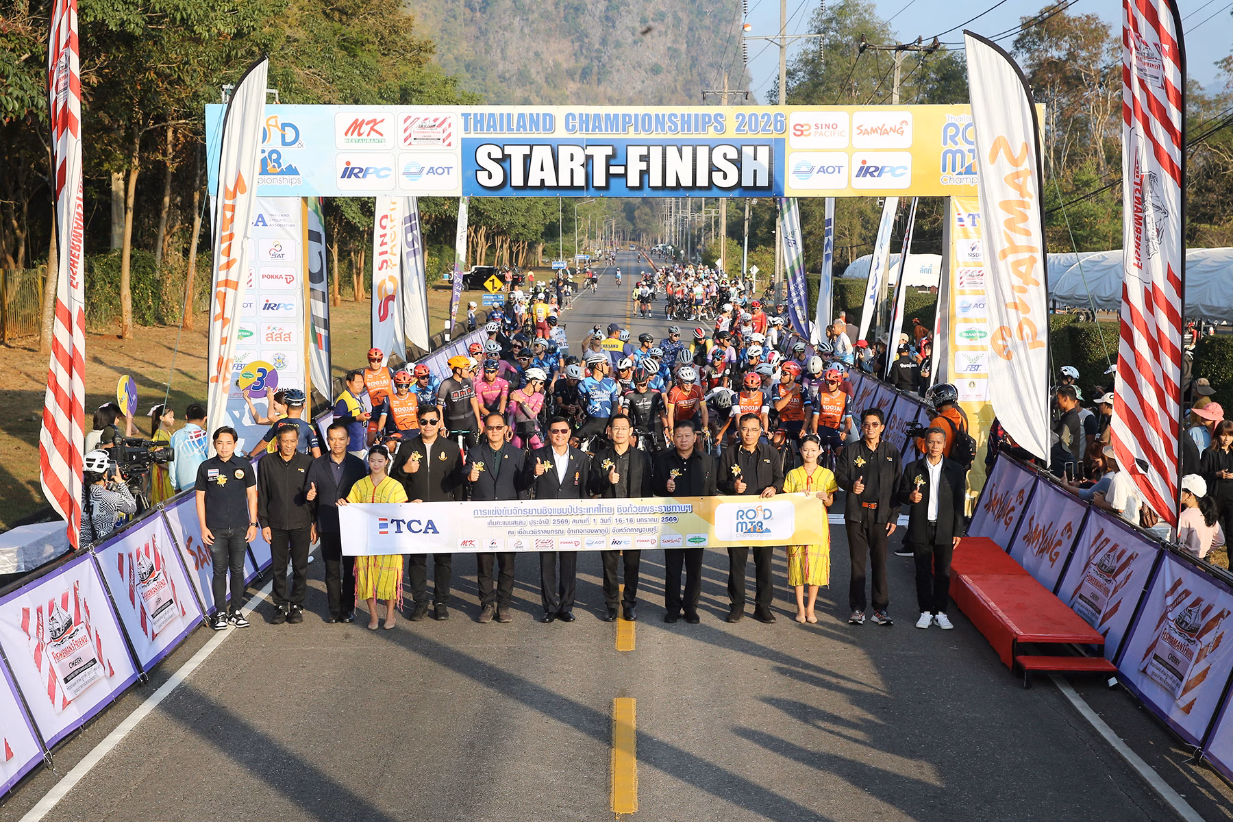 การแข่งขันจักรยานประเภทถนน ชิงแชมป์ประเทศไทย ชิงถ้วยพระราชทาน “คิงส์ภูมิพล” และการแข่งขันจักรยานประเภทเสือภูเขา ชิงแชมป์ประเทศไทย ชิงถ้วยพระราชทาน พระบาทสมเด็จพระเจ้าอยู่หัว ประจำปี 2569 ระหว่างวันที่ 16-18 มกราคม ที่เขื่อนวชิราลงกรณ อำเภอทองผาภูมิ จังหวัดกาญจนบุรี สำหรับพิธีเปิดการแข่งขันประเภทถนน เมื่อวันที่ 18 มกราคม ณ บริเวณลานจอดเฮลิคอปเตอร์ เขื่อนวชิราลงกรณ ได้รับเกียรติจาก นายสกล อักษรธนาวัฒน์ ผู้อำนวยการเขื่อนวชิราลงกรณ เป็นประธานในพิธี โดยมี พลเอกภพอนันฒ์ เหลืองภานุวัฒน์ รองประธานที่ปรึกษาสมาคมกีฬาจักรยานแห่งประเทศไทย ในพระบรมราชูปถัมภ์, นายประเทศ บุญยงค์ นายกเทศมนตรีตำบลท่าขนุน และอุปนายกสมาคมกีฬาจักรยานแห่งประเทศไทย ในพระบรมราชูปถัมภ์ และคณะกรรมการจัดการแข่งขันฯ ร่วมในพิธี