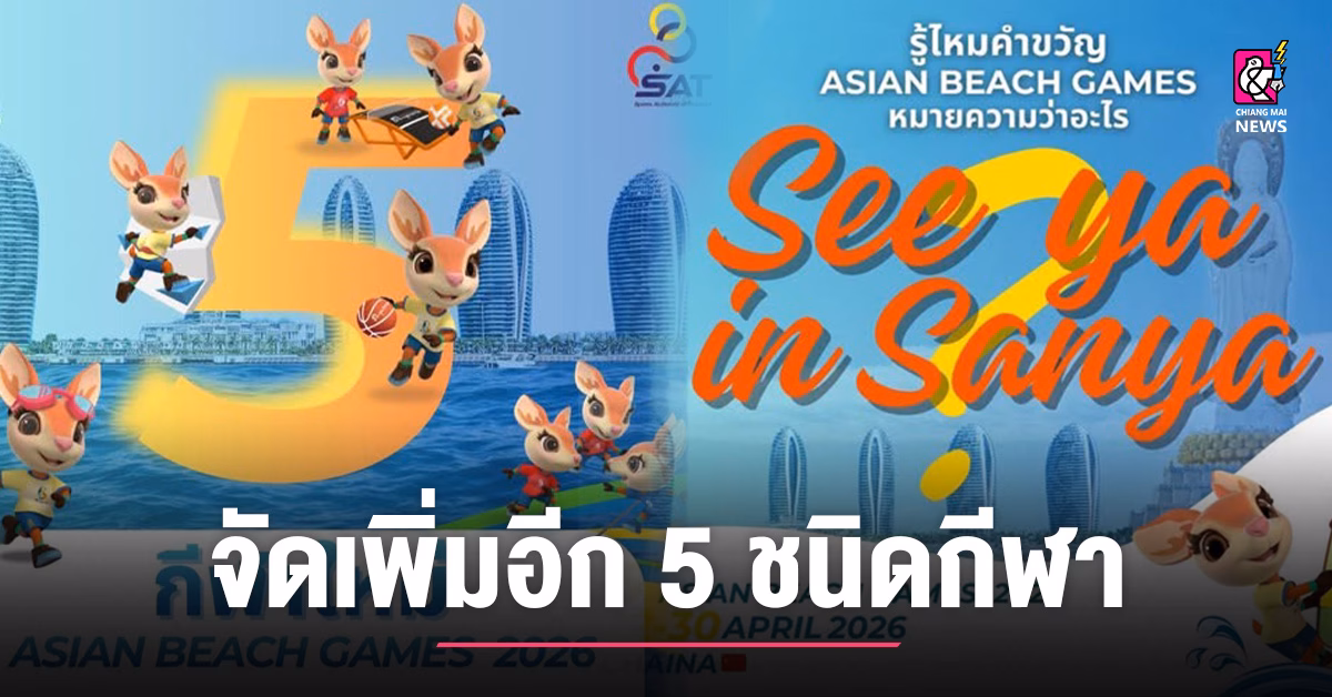 กกท. เชิญชม 5 กีฬาใหม่ในมหกรรมกีฬา Asian Beach Games 2026 ซานย่า ประเทศจีน เตรียมมันส์ไปกับ 5 ชนิดกีฬาสุดเร้าใจ ที่เพิ่มเข้ามาใหม่ให้แฟนกีฬาชายหาดได้ลุ้นกันมากขึ้น!
