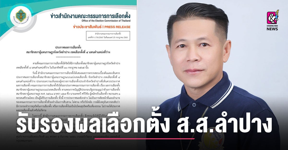 ตามที่คณะกรรมการการเลือกตั้งได้จัดให้มีการเลือกตั้งสมาชิกสภาผู้แทนราษฎรจังหวัดลำปาง เขตเลือกตั้งที่ 4แทนตำแหน่งที่ว่าง ในวันอาทิตย์ที่ 10 กรกฎาคม 65 นั้น สำนักงานคณะกรรมการการเลือกตั้งได้เสนอผลการตรวจสอบเบื้องต้นและเห็นควรประกาศผลการเลือกตั้งสมาชิกสภาผู้แทนราษฎรแบบแบ่งเขตเลือกตั้ง จังหวัดลำปาง เขตเลือกตั้งที่ 4 แทนตำแหน่งที่ว่างคณะกรรมการการเลือกตั้งจึงได้ออกประกาศคณะกรรมการการเลือกตั้ง เรื่อง ผลการเลือกตั้งประกอบความเห็นของผู้ตรวจการเลือกตั้งประจำจังหวัดลำปางที่เห็นควรประกาศสมาชิกสภาผู้แทนราษฎรแบบแบ่งเขตเลือกตั้ง ตามพระราชบัญญัติประกอบรัฐธรรมนูญว่าด้วยการเลือกตั้ง สมาชิกสภาผู้แทนราษฎร พ.ศ. 2561มาตรา 127 ซึ่ง นายเดชทวี ศรีวิชัย ผู้สมัครรับเลือกตั้ง หมายเลข 1 พรรคเสรีรวมไทย เป็นผู้ได้รับการเลือกตั้ง ทั้งนี้ การประกาศผลดังกล่าว ไม่เป็นการตัดหน้าที่และอำนาจของคณะกรรมการการเลือกตั้งที่จะดำเนินการสืบสวน ไต่สวน หรือวินิจฉัย กรณีมีเหตุอันควรสงสัยว่ามีการกระทำการทุจริตในการเลือกตั้ง หรือการเลือกตั้งไม่เป็นไปโดยสุจริตหรือเที่ยงธรรม ไม่ว่าจะได้ประกาศผลการเลือกตั้งแล้วหรือไม่ก็ตามในการนี้ สำนักงานคณะกรรมการการเลือกตั้ง จึงขอแจ้งให้ผู้ได้รับการเลือกตั้งเป็นสมาชิกสภาผู้แทนราษฎรตามประกาศดังกล่าว มารับหนังสือรับรองการได้รับเลือกตั้งเป็นสมาชิกสภาผู้แทนราษฎรแบบแบ่งเขตเลือกตั้ง ส.ส. 6/4) นับแต่วันที่ 26 กรกฎาคม 65 เป็นต้นไป ไม่เว้นวันหยุดราชการ
