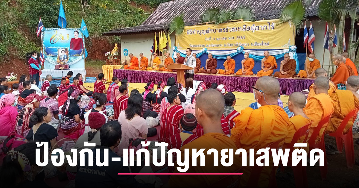 อ.กัลยาณิวัฒนา จ.เชียงใหม่ ขับเคลื่อนกิจกรรม “ป้องกัน-แก้ไขปัญหายาเสพติด” ผ่าน “กองทุนแม่ของแผ่นดิน” พร้อมแก้ไขปัญหาความยากจน ผ่านกิจกรรมทางศาสนา “ทำบุญตักบาตร ช่วยเหลือผู้ยากไร้” วันที่ 14 ตุลาคม 2565 เวลา 07:30 น. นายวรศักดิ์ พานทอง นายอำเภอกัลยาณิวัฒนา จังหวัดเชียงใหม่ เป็นประธานในพิธีเปิดกิจกรรมป้องกัน-แก้ไขปัญหายาเสพติด และปัญหาความยากจน ผ่านกลไกการขับเคลื่อนของหมู่บ้านและชุมชน เพื่อสร้างความตระหนักรู้ สร้างความเข้มแข็งทางด้านจิตใจ ภายใต้โครงการ”ตัก บาตรพระสงฆ์และพิธีมอบกองทุนแม่ของแผ่นดิน “ บ้านคุณแม่รวม ตำบลแจ่มหลวง อำเภอกัลยาณิวัฒนา ผู้เข้าร่วมพิธีประกอบด้วย ผู้บริหารองค์กรปกครองส่วนท้องถิ่น กำนันผู้ใหญ่บ้านในพื้นที่ ทั้งนี้กิจกรรมประกอบด้วย การมอบเงินขวัญถุงพระราชทาน ให้กับหมู่บ้านชุมชน เพื่อสนับสนุนการป้องกัน-แก้ไขปัญหายาเสพติดในหมู่บ้านชุมชน​ ทำบุญตักบาตรข้าวสารอาหารแห้ง เพื่อช่วยเหลือผู้ยากไร้ในหมู่บ้านชุมชนและหมู่บ้านใกล้เคียง สำหรับผู้เข้าร่วมกิจกรรม​ ได้แก่ ราษฎรบ้านขุนแม่รวม หมู่ที่ 1 ตำบลแจ่มหลวง และหมู่บ้านใกล้เคียง จำนวนประมาณ 500 คน พร้อมกันนี้ นายวรศักดิ์ พานทอง นายอำเภอกัลยาณิวัฒนา […]