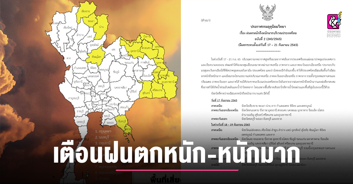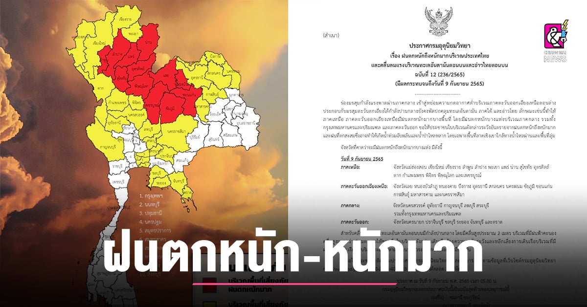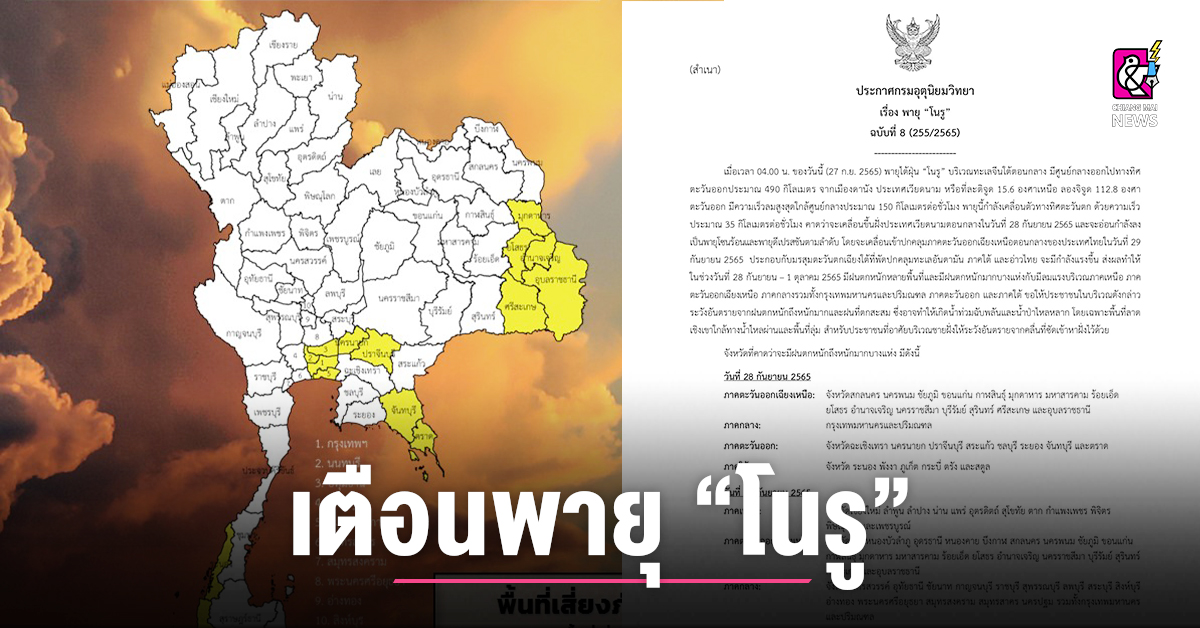 ประกาศกรมอุตุนิยมวิทยา เรื่อง พายุ “โนรู” ฉบับที่ 8 (255/2565) เมื่อเวลา 04.00 น. ของวันนี้ (27 ก.ย. 2565) พายุไต้ฝุ่น “โนรู” บริเวณทะเลจีนใต้ตอนกลาง มีศูนย์กลางออกไปทางทิศตะวันออกประมาณ 490 กิโลเมตร จากเมืองดานัง ประเทศเวียดนาม หรือที่ละติจูด 15.6 องศาเหนือ ลองจิจูด 112.8 องศา ตะวันออก มีความเร็วลมสูงสุดใกล้ศูนย์กลางประมาณ 150 กิโลเมตรต่อชั่วโมง พายุนี้กำลังเคลื่อนตัวทางทิศตะวันตก ด้วยความเร็วประมาณ 35 กิโลเมตรต่อชั่วโมง คาดว่าจะเคลื่อนขึ้นฝั่งประเทศเวียดนามตอนกลาง ในวันที่ 28 กันยายน 2565 และจะอ่อนกำลังลง เป็นพายุโซนร้อนและพายุดีเปรสชันตามลำดับ โดยจะเคลื่อนเข้าปกคลุมภาคตะวันออกเฉียงเหนือตอนกลาง ของประเทศไทยในวันที่ 29 กันยายน 2565 ประกอบกับมสุมตะวันตกเฉียงใต้ ที่พัดปกคลุมทะเลอันดามัน ภาคใต้ และอ่าวไทย จะมีกำลังแรงขึ้น ส่งผลทำให้ ในช่วงวันที่ […]