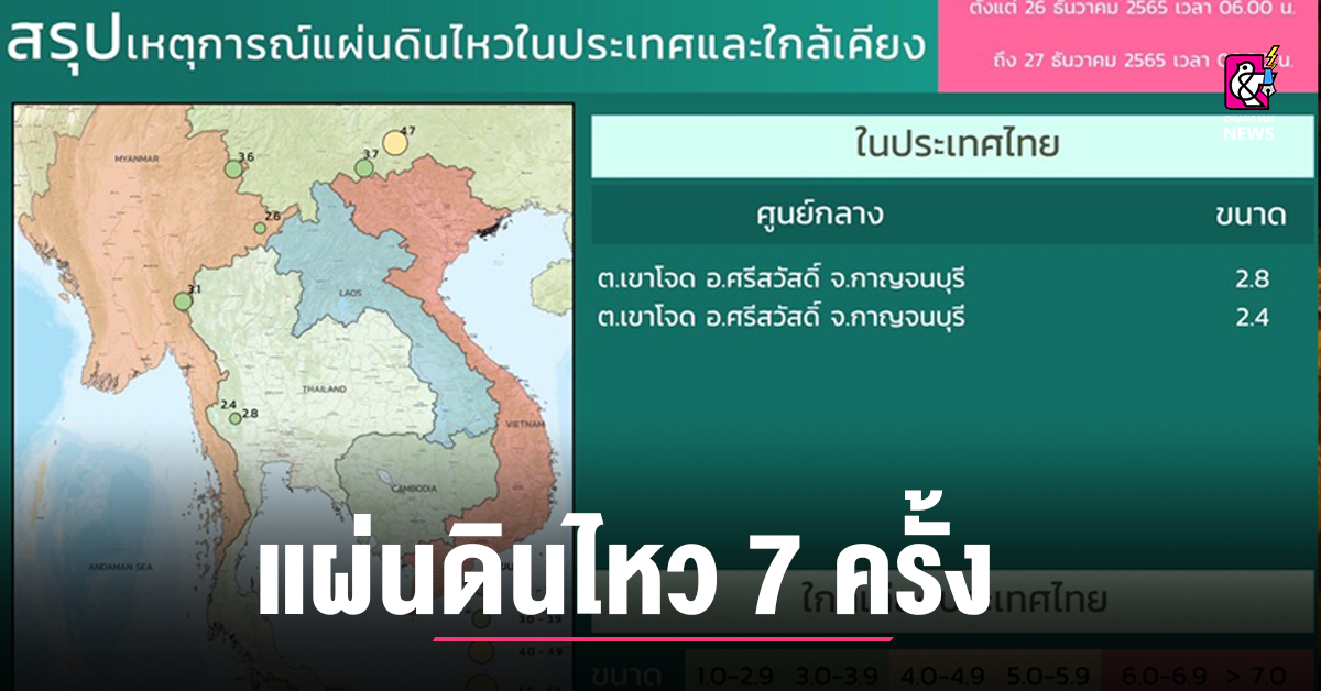 แผ่นดินไหวในช่วงวันที่ 26-27 ธันวาคม 2565 จำนวน 7 ครั้ง