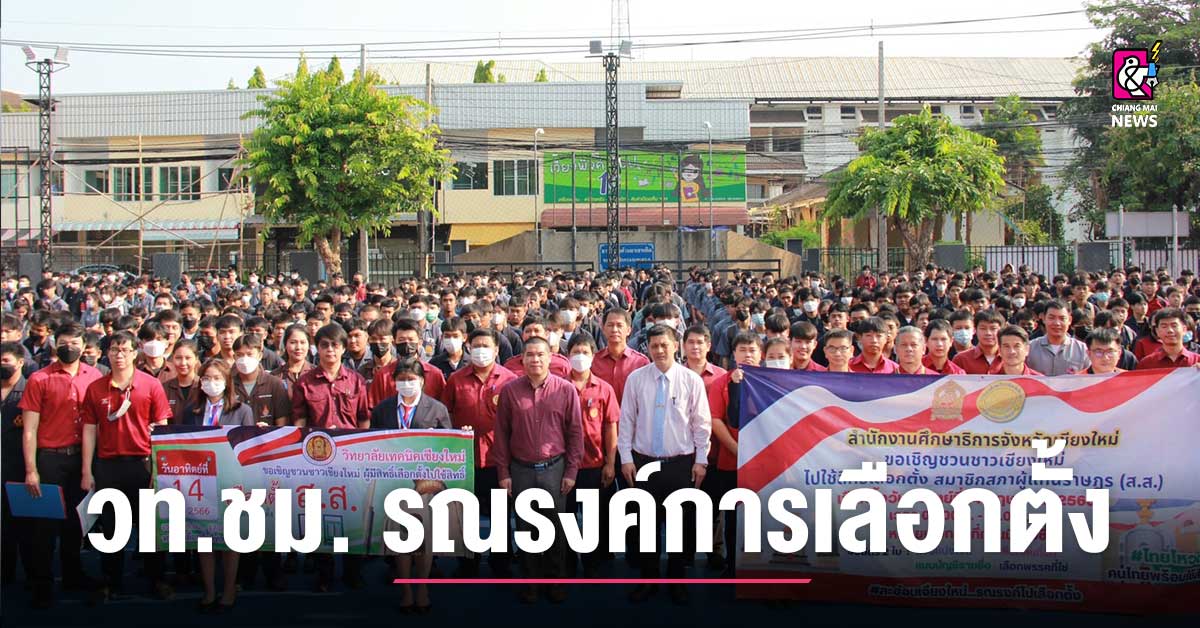 วท.ชม.จัดกิจกรรมรณรงค์และให้ความรู้เกี่ยวกับการเลือกตั้งสมาชิกสภาผู้แทนราษฎร (ส.ส.) วันพุธที่ 3 พฤษภาคม 2566นายวัชรพงศ์ ฝั้นติ๊บผู้อำนวยการวิทยาลัยเทคนิคเชียงใหม่ปฏิบัติหน้าที่ผู้อำนวยการสำนักงานอาชีวศึกษาจังหวัดเชียงใหม่ มอบหมายให้นายธีรวุธ ยะอูป รองผู้อำนวยการฝ่ายบริหารทรัพยากร นายชรันต์ยุทธ์ บุญยง รองผู้อำนวยการฝ่ายวิชาการ พร้อมคณะครู จัดกิจกรรม “เชิญชวนชาวเชียงใหม่ ไปใช้สิทธิเลือกตั้ง สมาชิกสภาผู้แทนราษฏร (ส.ส.) เพื่อรณรงค์และให้ความรู้เกี่ยวกับการเลือกตั้งสมาชิกสภาผู้แทนราษฎร (ส.ส.) แก่นักเรียน นักศึกษา โดยผู้มีสิทธิเลือกตั้ง มีอายุตั้งแต่ 18 ปีบริบูรณ์ขึ้นไป โดยให้เข้าสิทธิเลือกตั้งตามภูมิลำเนาที่อยู่ในบัตรประจำตัวประชาชน หรือ ใช้สิทธิ์เลือกตั้งนอกพื้นที่ตามสิทธิ์ที่ลงทะเบียนไว้สำหรับนักเรียน นักศึกษา ที่ไม่ได้มีภูมิลำเนาอยู่ที่จังหวัดเชียงใหม่ ในวันที่ 14 พฤษภาคม 2566ณ บริเวณลานหน้าเสาธงวิทยาลัยเทคนิคเชียงใหม่