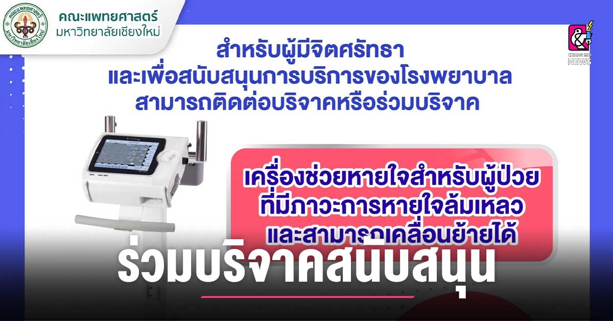 สำหรับผู้มีจิตศรัทธาและเพื่อสนับสนุนการบริการของโรงพยาบาลสามารถติดต่อบริจาคหรือร่วมบริจาค 🔸 เครื่องช่วยหายใจสำหรับผู้ป่วยที่มีภาวะการหายใจล้มเหลว และสามารถเคลื่อนย้ายได้ เครื่องละ 450,000 บาท(จำนวน 10 เครื่อง) 🔹 บริจาคได้ที่ มูลนิธิโรงพยาบาลสวนดอก คณะแพทยศาสตร์ มช.บริจาคผ่านการโอนเงิน บัญชีธนาคารไทยพาณิชย์ จำกัด (มหาชน) 🔹 ชื่อบัญชี “มูลนิธิโรงพยาบาลสวนดอก คณะแพทยศาสตร์ มหาวิทยาลัยเชียงใหม่” ประเภทบัญชี บัญชีกระแสรายวันเลขที่บัญชี 468 – 069896 – 8 🔹 ชื่อบัญชี “มูลนิธิโรงพยาบาลสวนดอก คณะแพทยศาสตร์ มหาวิทยาลัยเชียงใหม่” ประเภทบัญชี บัญชีออมทรัพย์เลขที่บัญชี 566 – 404844 – 0 ส่งหลักฐานการโอนเงินผ่านทาง LINE ของมูลนิธิโรงพยาบาลสวนดอกโดยแอด LINE : @sdmedสอบถามรายละเอียดเพิ่มเติม : โทร 053-938400 ติดตามผ่านทาง Facebook : https://cmu.to/u3ZbK #มูลนิธิโรงพยาบาลสวนดอก […]